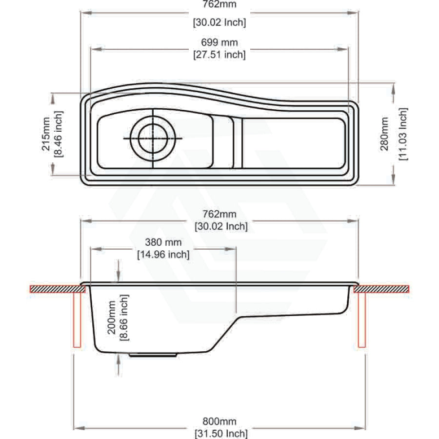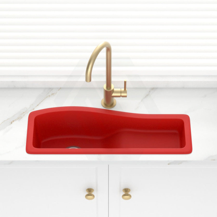 The 762x280x200mm Red Quartz Granite Single Bowl Sink with Drain Board for Top/Under Mount in Kitchen would give an easy-to-clean and elegant addition to any kitchen.