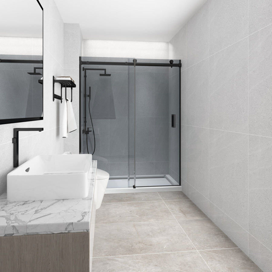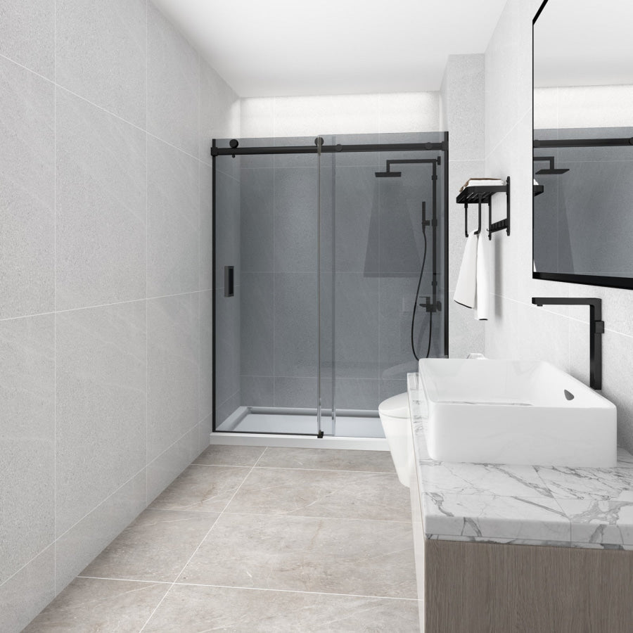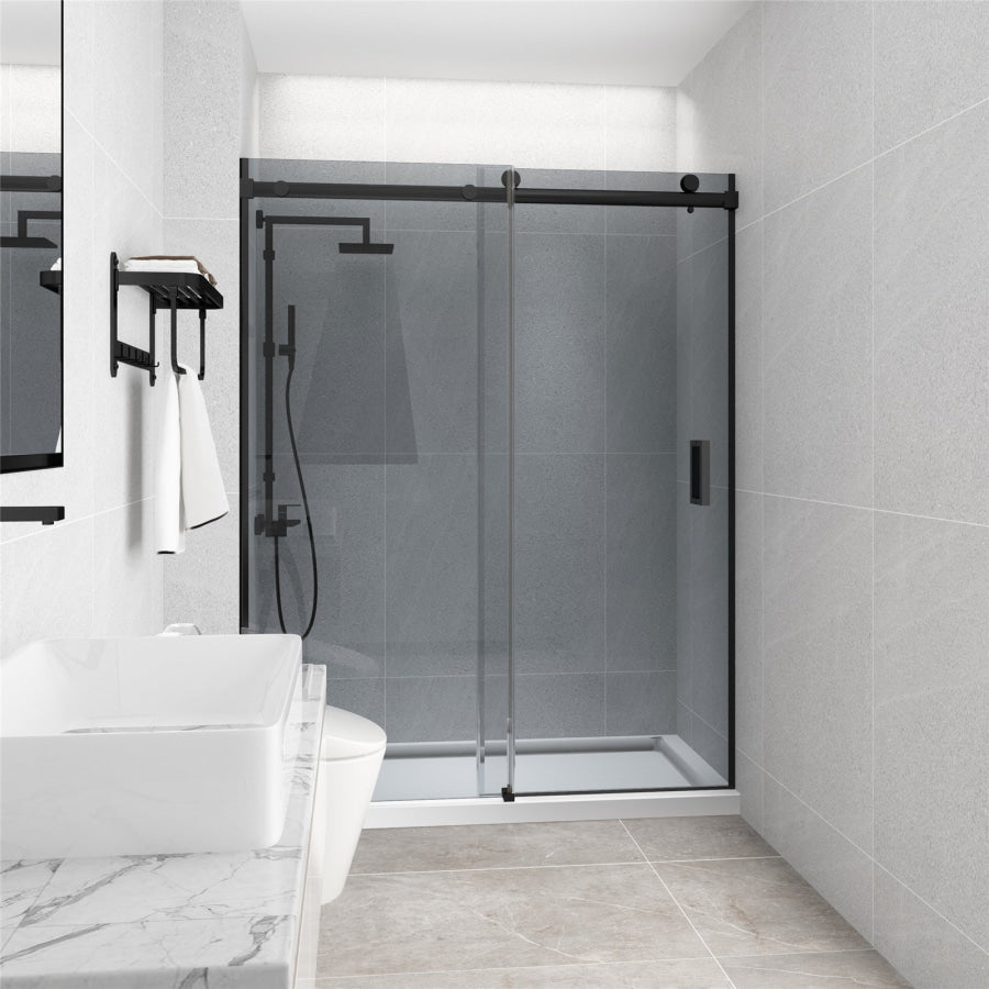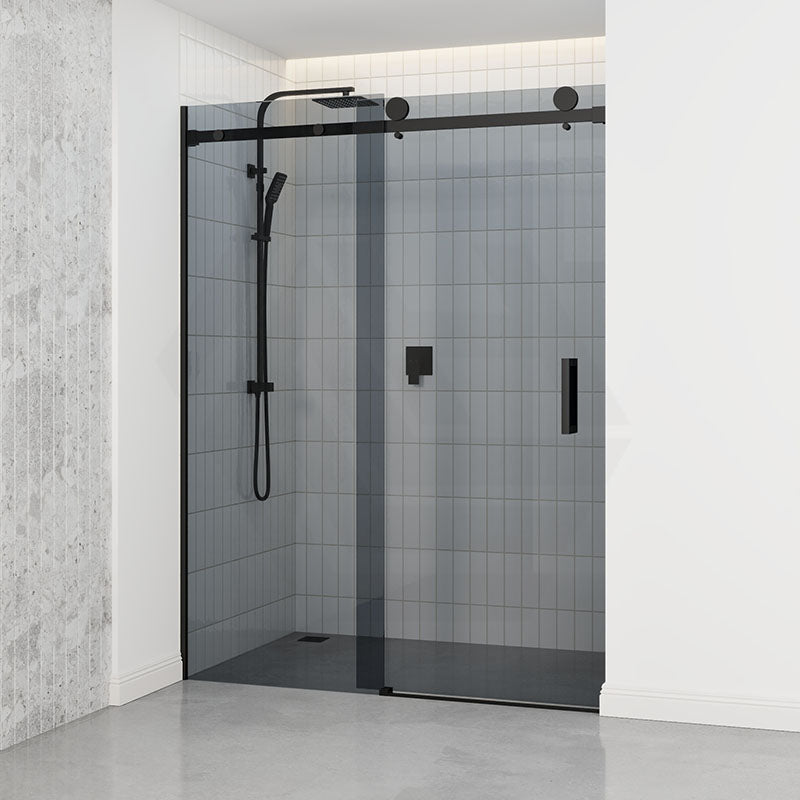 1180-1800x2000mm Grey Glass Wall to Wall Sliding Shower Screen Frameless Black Stainless Steel Square Rail 10mm Safety Glass
