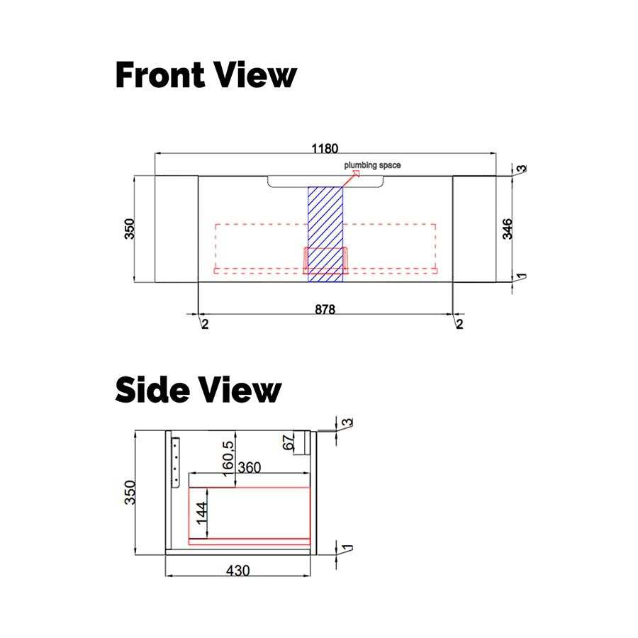 Note 1 | Please note that if you choose to drill holes for the tap at the 10 o'clock and 2 o'clock positions on the stone top, there is a high likelihood of encountering the partition panels inside the cabinet. In such cases, it will be necessary for your plumber to make cuts inside the cabinet. |