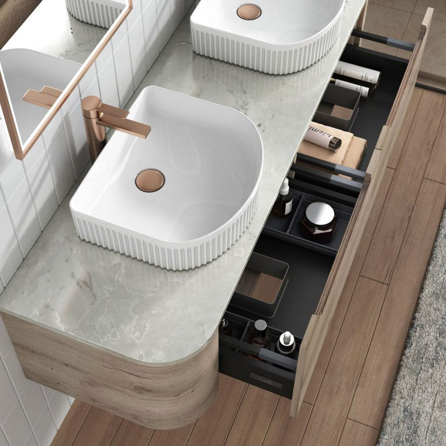 *Please note that because the vanity is made with a natural timber veneer, variations in wood grain and color may occur, this may not be the same for each drawer front and are not covered under warranty.