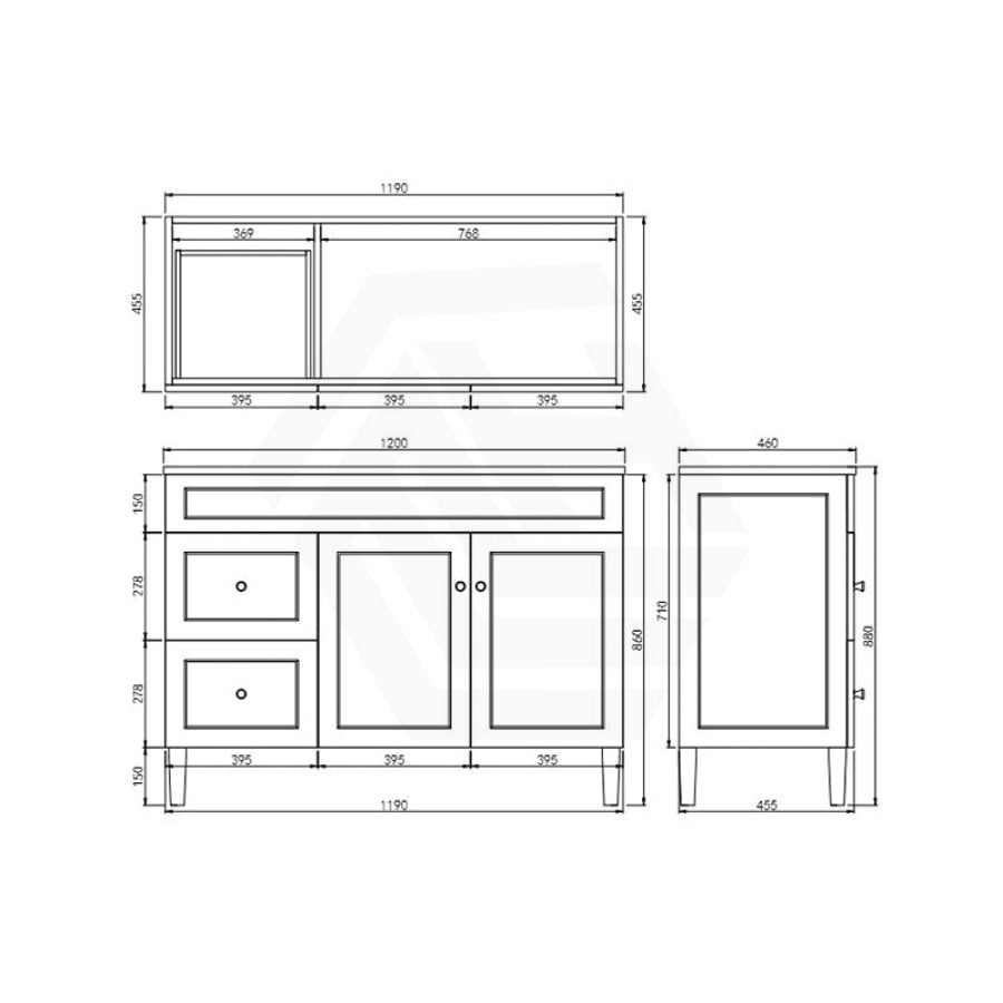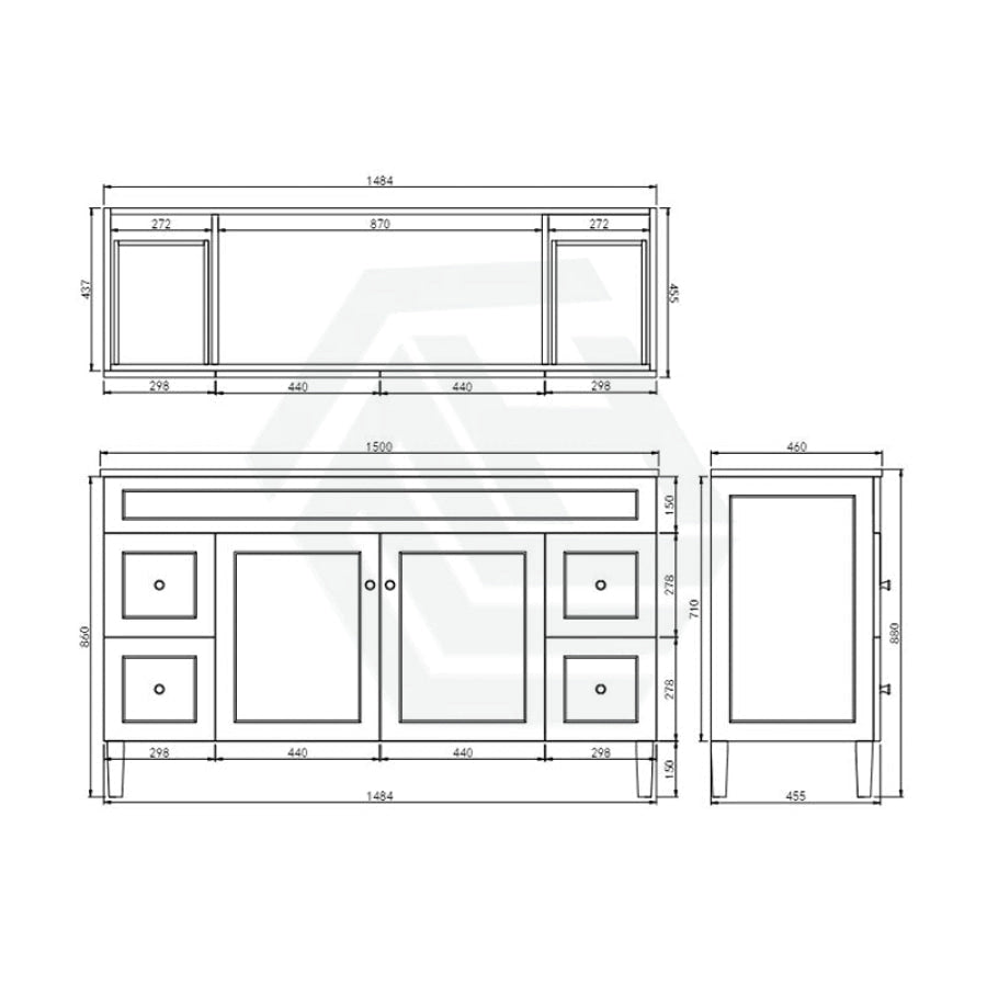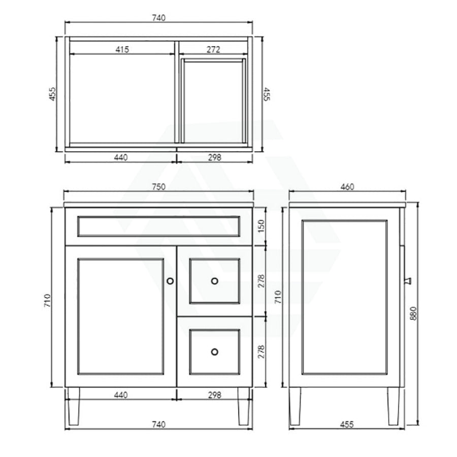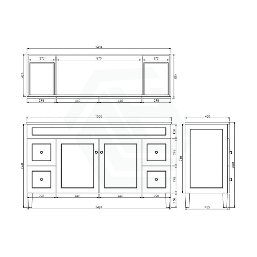 - 600mm Vanity (With soft closing double doors) 750mm Vanity (With double drawers and one door) 900/1200mm Vanity (With double drawers and double doors) 1500mm Vanity (With four drawers and double doors)