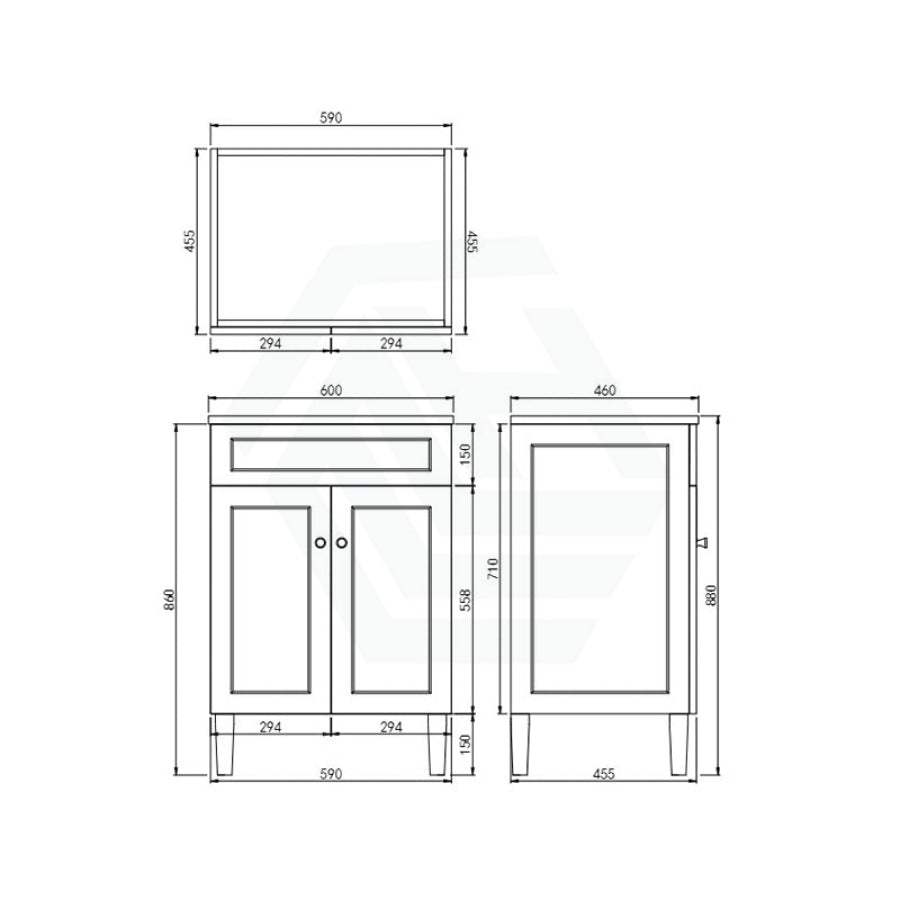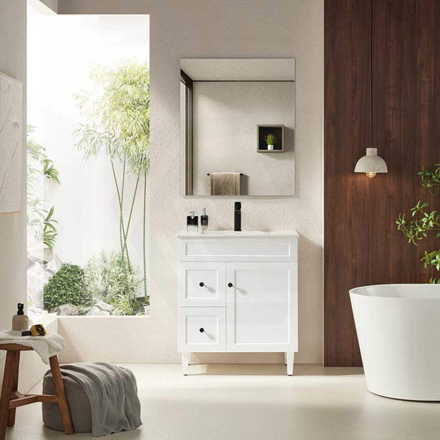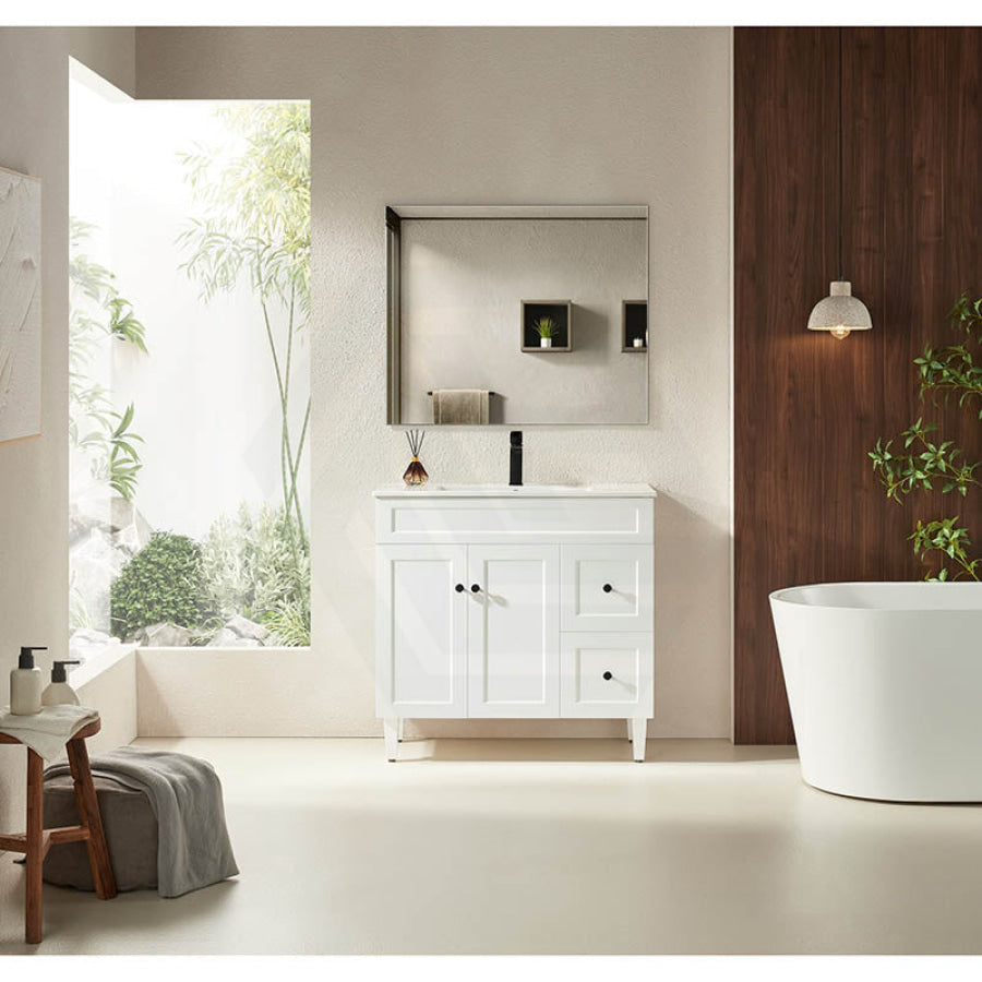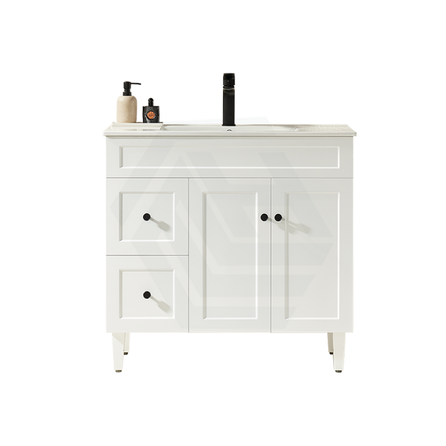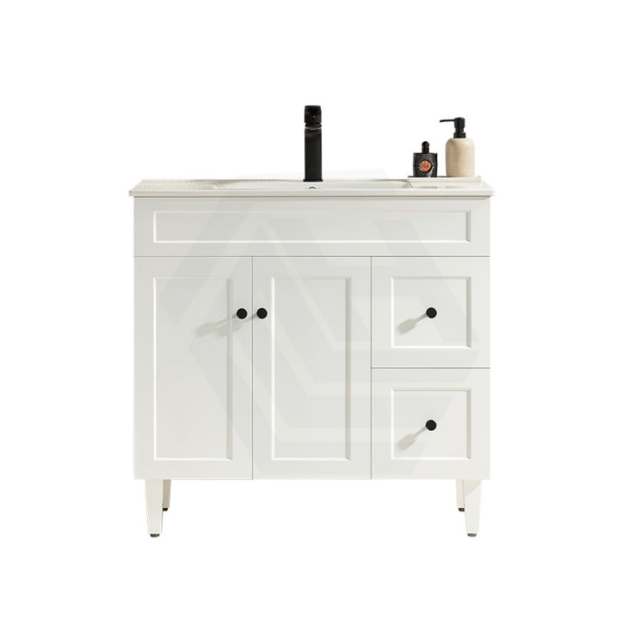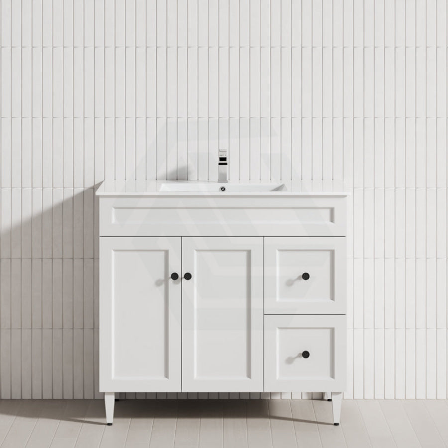 600-1500mm Harrington Freestanding Vanity with Legs Matt White PVC Cabinet ONLY & Ceramic Top Available