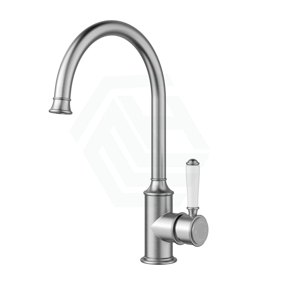 N#2(Nickel) IKON Clasico Brushed Nickel Brass Gooseneck Sink Mixer with Brass/Ceramic Handle