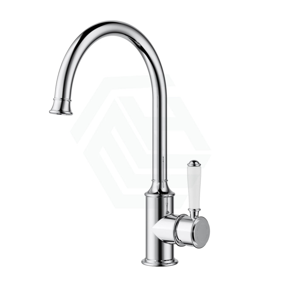 IKON Clasico Chrome Brass Gooseneck Sink Mixer with Brass/Ceramic Handle