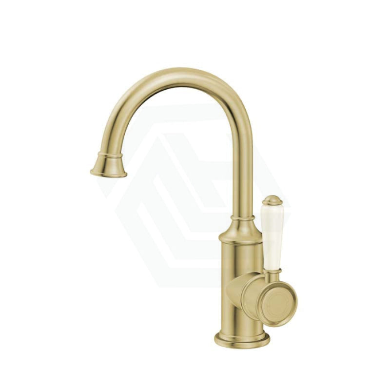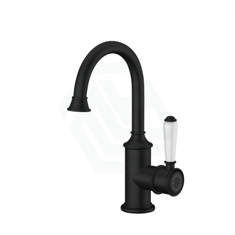 IKON Clasico Gooseneck Solid Brass Swivel Basin Mixer Tap Available in Various Colors, Brass/Ceramic Handle