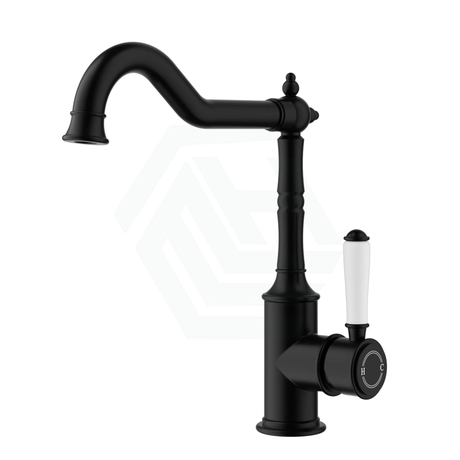 IKON Clasico Matt Black Solid Brass Sink Mixer with Brass/Ceramic Handle