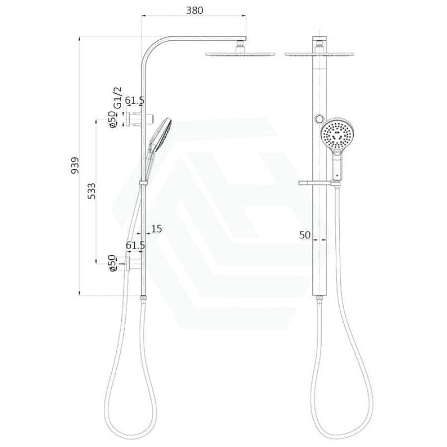 Main Product1 x Brass shower head; 1 x Handheld shower with 1.5m water hose; 1 x shower rail with diverter & water inlet