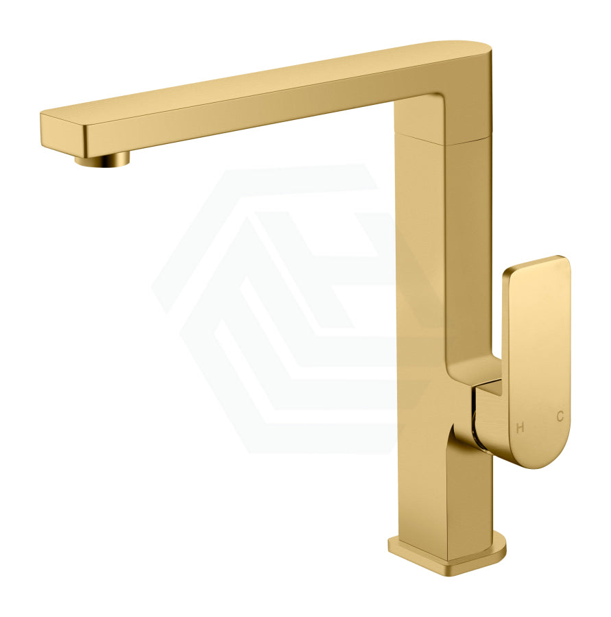 G#3(Gold) IKON Flores High Rise 360 Swivel Solid Brass Brushed Gold Handle Kitchen Sink Mixer Tap