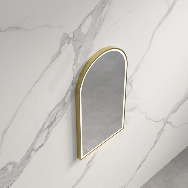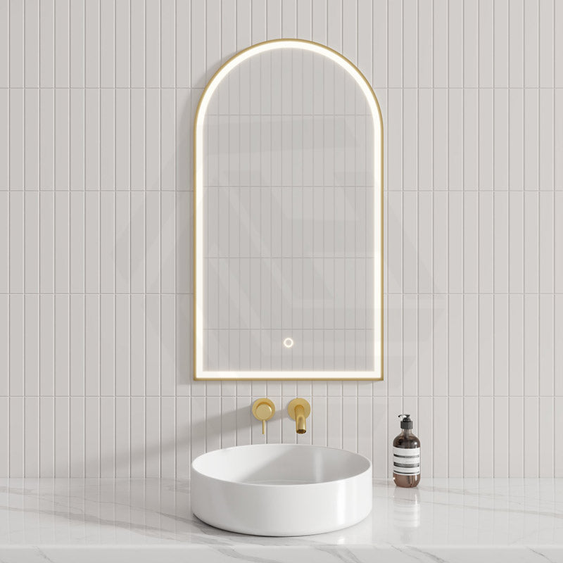500x900mm Infinity BIANCO Arch Framed LED Frontlit Mirror Touch Sensor Brushed Gold/Matt Black