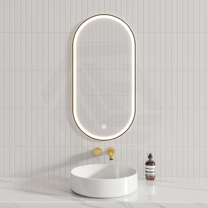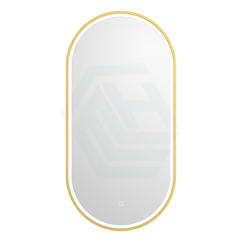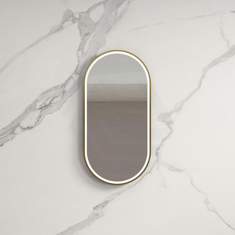 450x900mm METRO Oval Framed LED Frontlit Mirror Touch Sensor Matt Black/Brushed Gold