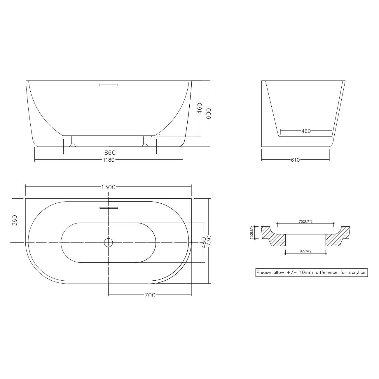 The 1300/1400/1500/1700mm Infinity Venus Back to Wall Bathtub with Overflow would give a durable and comfy addition to any bathroom.