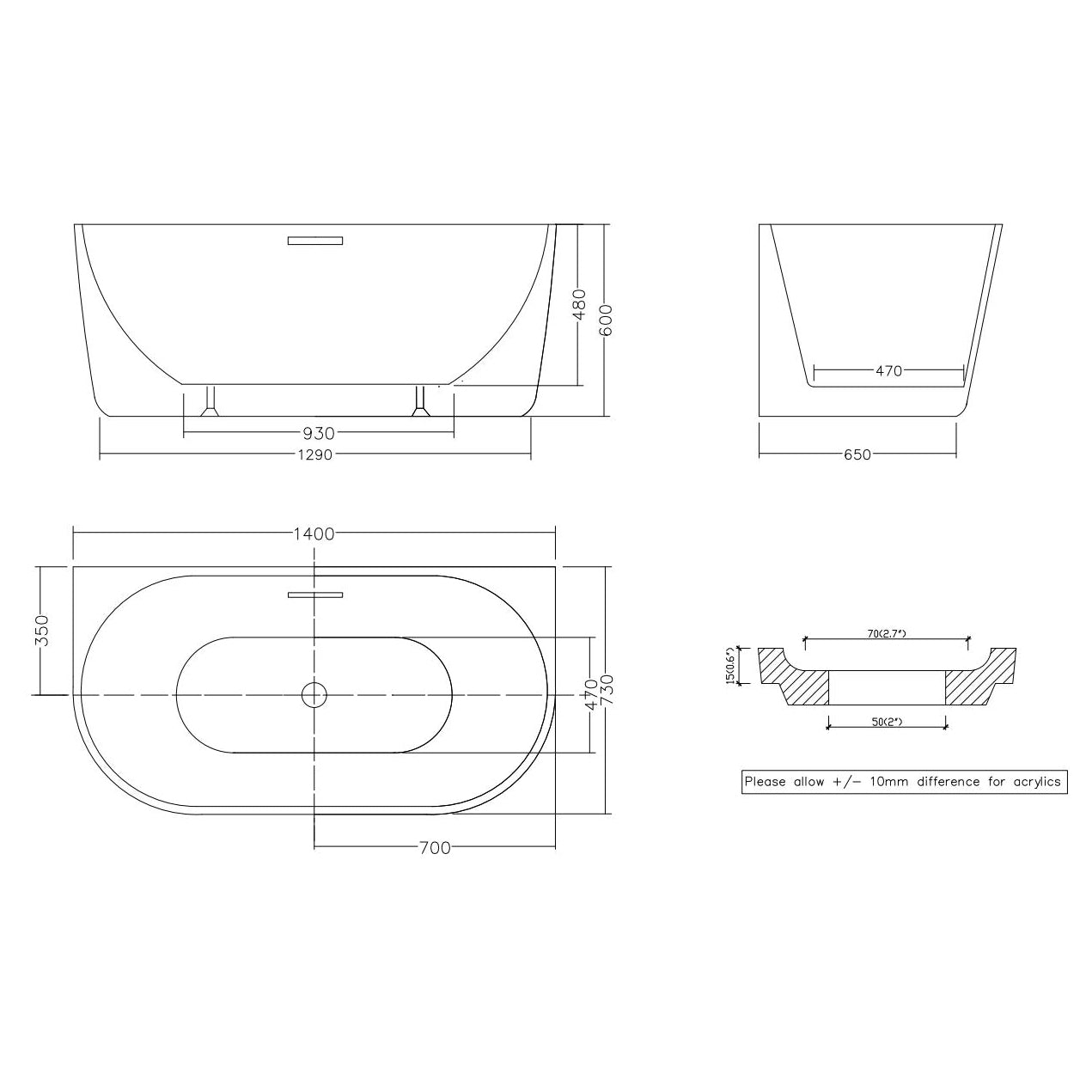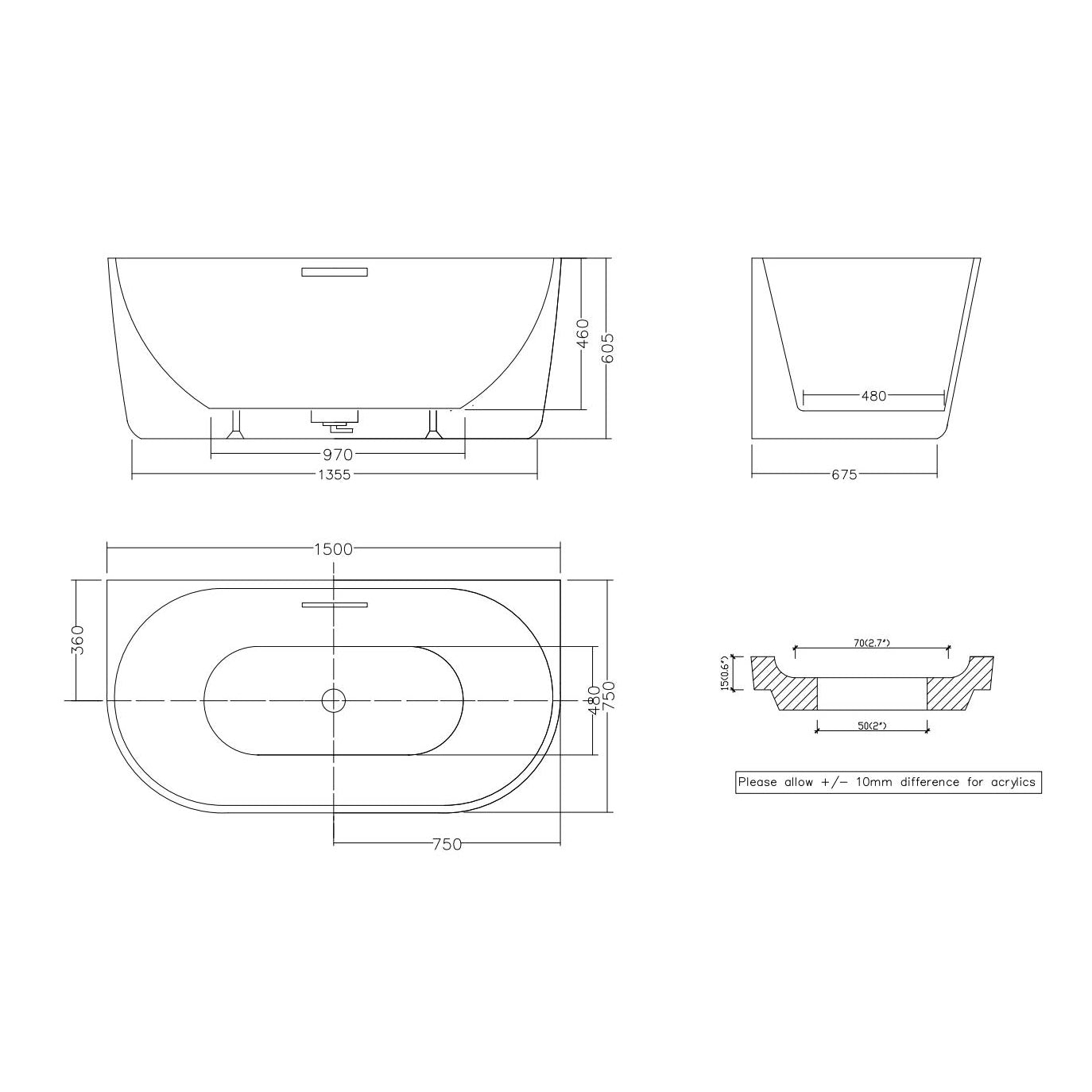 | Note 2 | Specification may vary from batch to batch. Please make sure you got the measurement details from physical bathtubs before plumbing. |