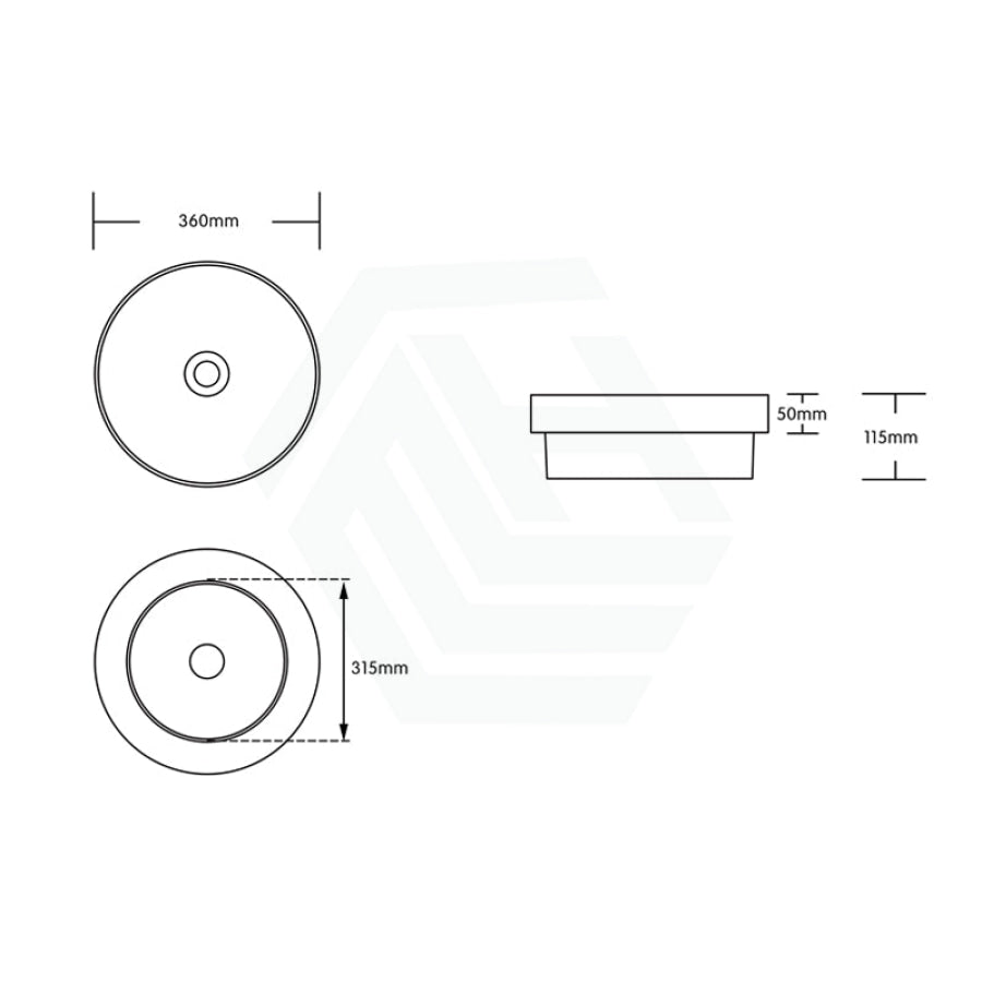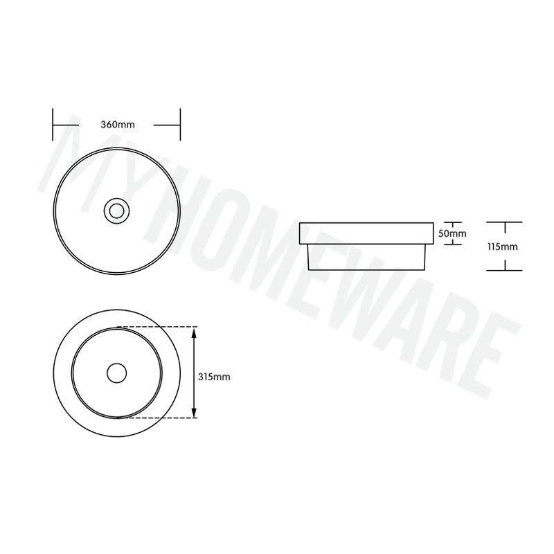 360x360x115mm Ceramic Drop in Basin Round Inset Wash Basin Variant Colour Available