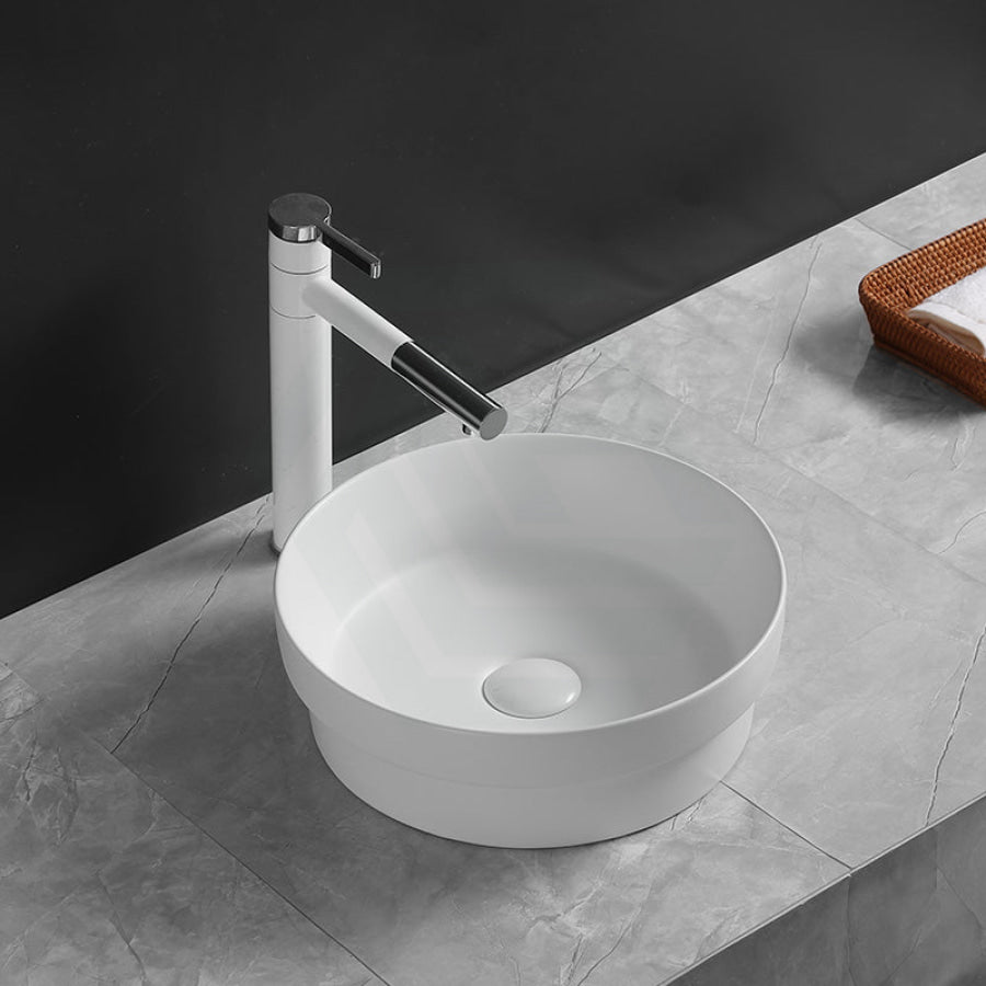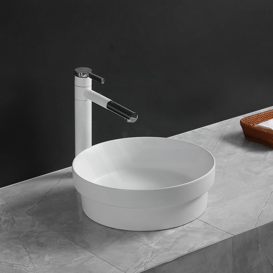 The 360x360x115mm Matt White/Gloss White Ceramic Drop in Basin Round Inset Wash Basin would give a high-quality and elegant addition to any bathroom.