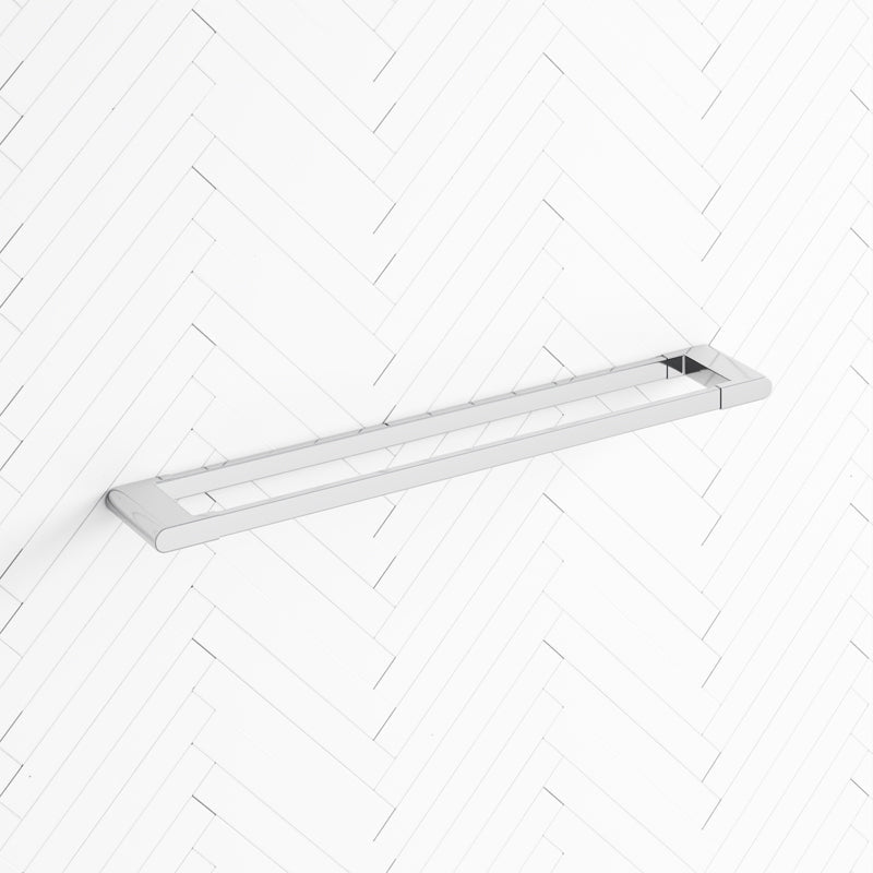 Kara 800mm Chrome Brass Square & Round Single Towel Rail