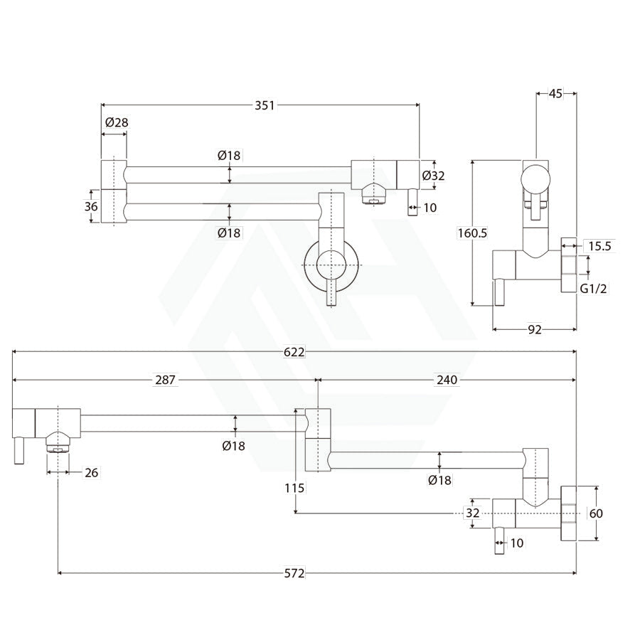 Fienza Kaya Extendable Arm Kitchen Pot Filler Mixer Cold Water Only In Various Colours