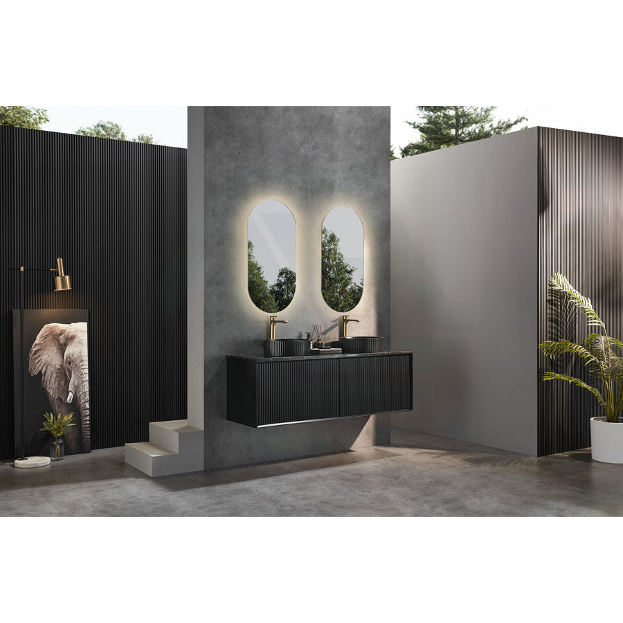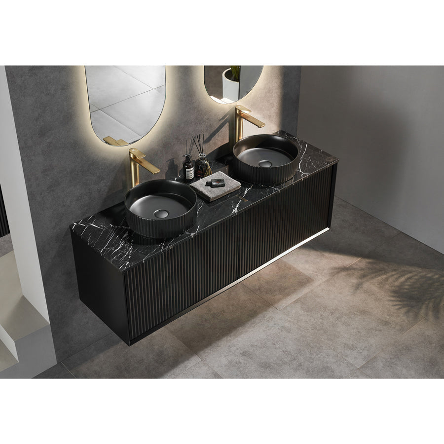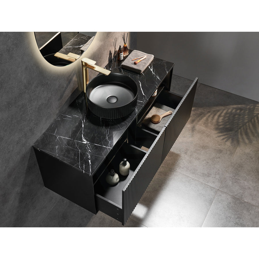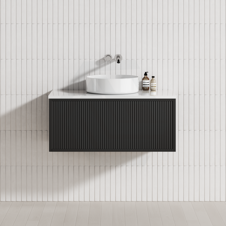 600-1500mm Kirribilli Wall Hung Bathroom Vanity Matt Black PVC Board Cabinet ONLY&Stone Top Available
