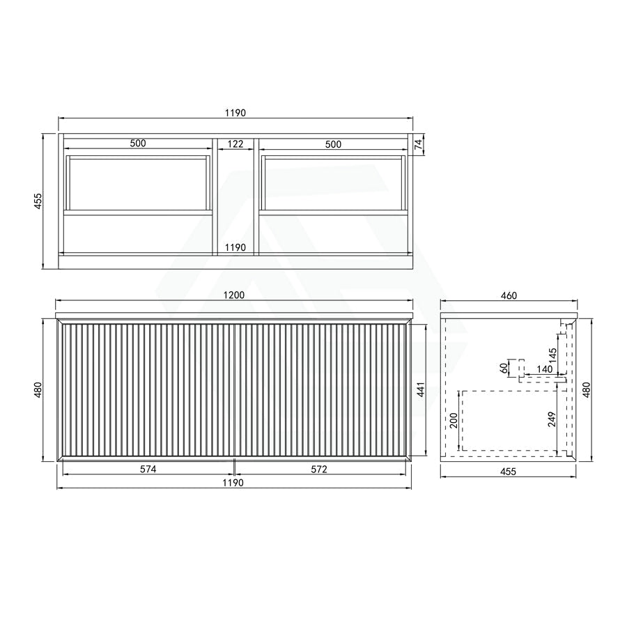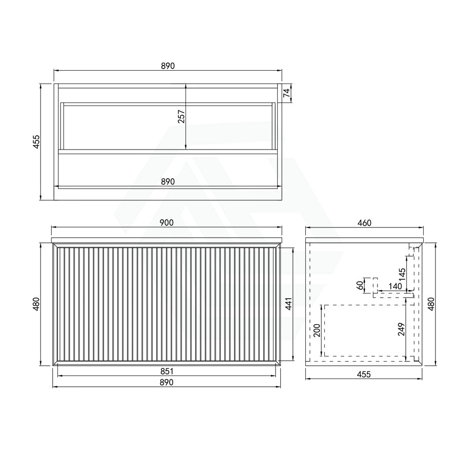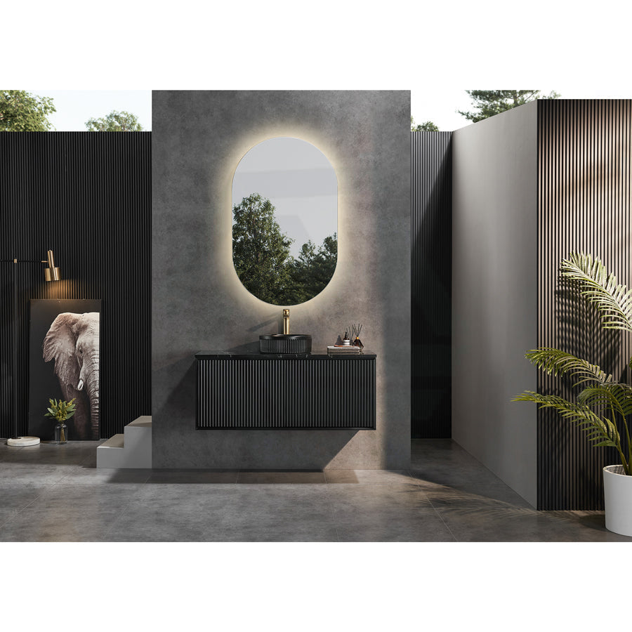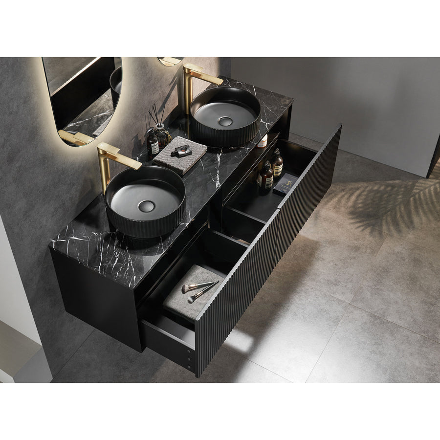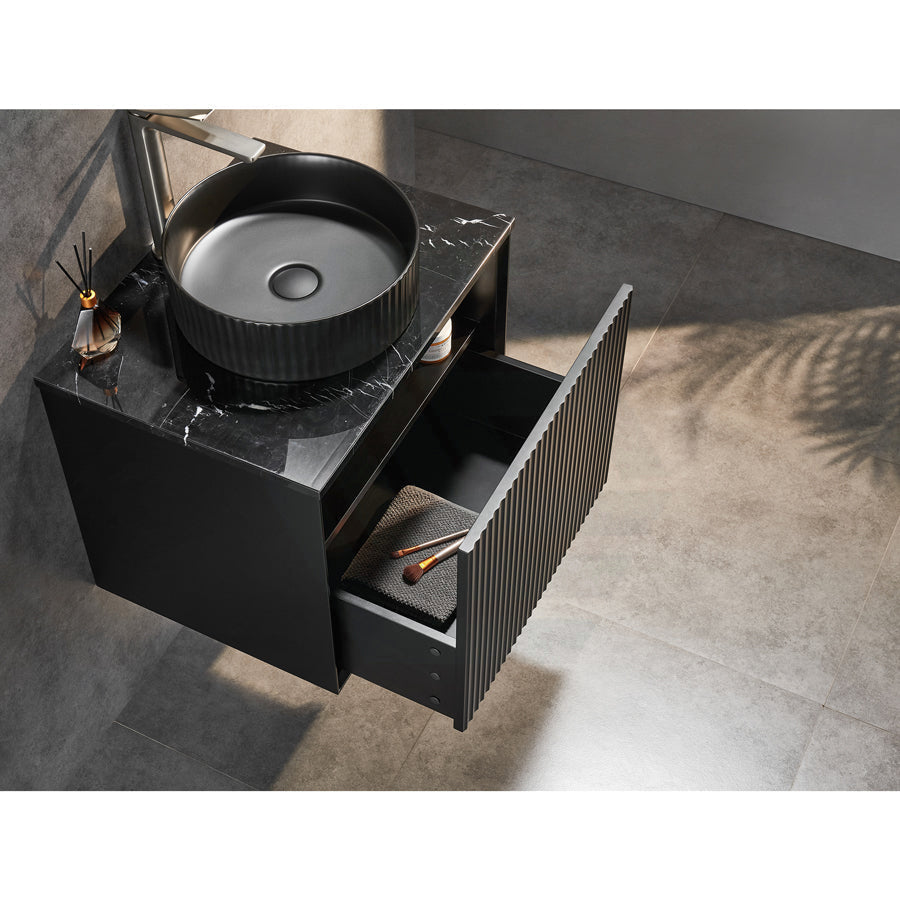 600-1500mm Kirribilli Wall Hung Bathroom Vanity Matt Black PVC Board Cabinet ONLY&Stone Top Available