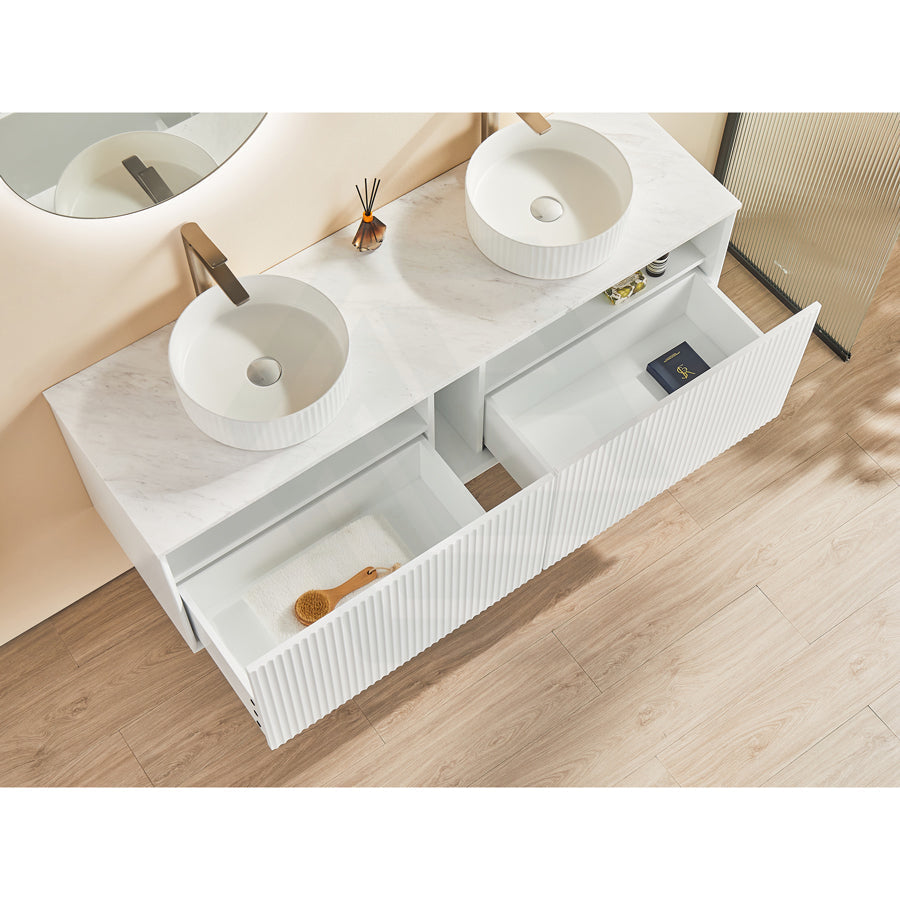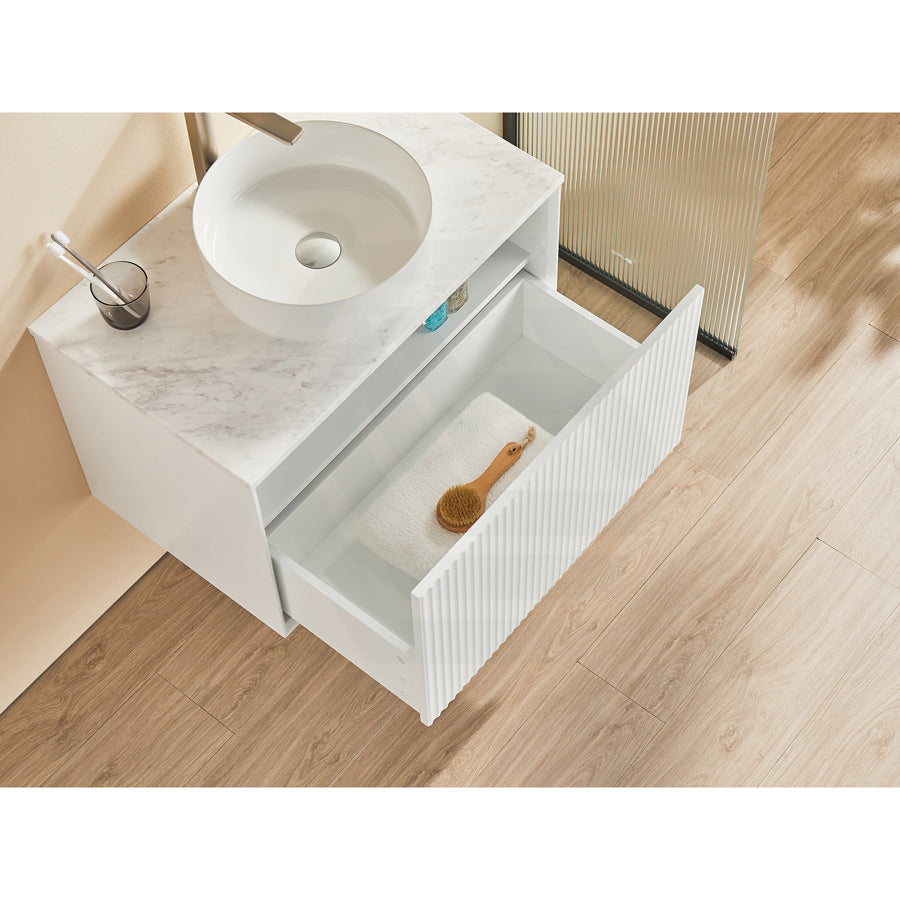 600-1500mm Kirribilli Wall Hung Bathroom Vanity Matt White PVC Board Cabinet ONLY&Stone Top Available
