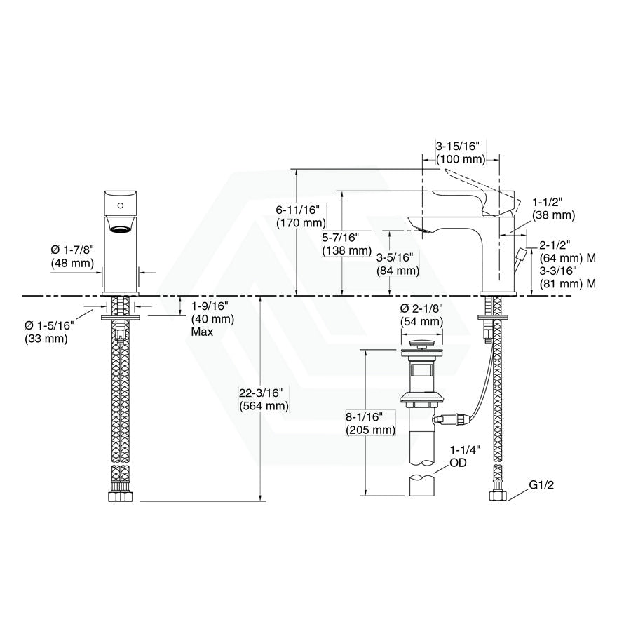 - Includes cable drain with 1-1/4" (32 mm) metal tailpiece