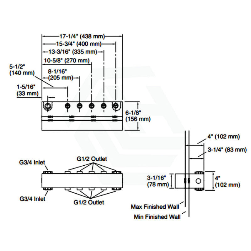 Requires five-port thermostatic valve with integral volume control (sold separately)