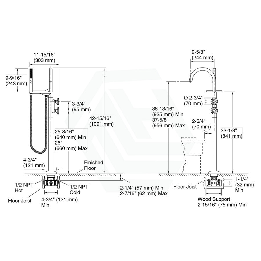 Requires floor-mount bath filler mounting base
