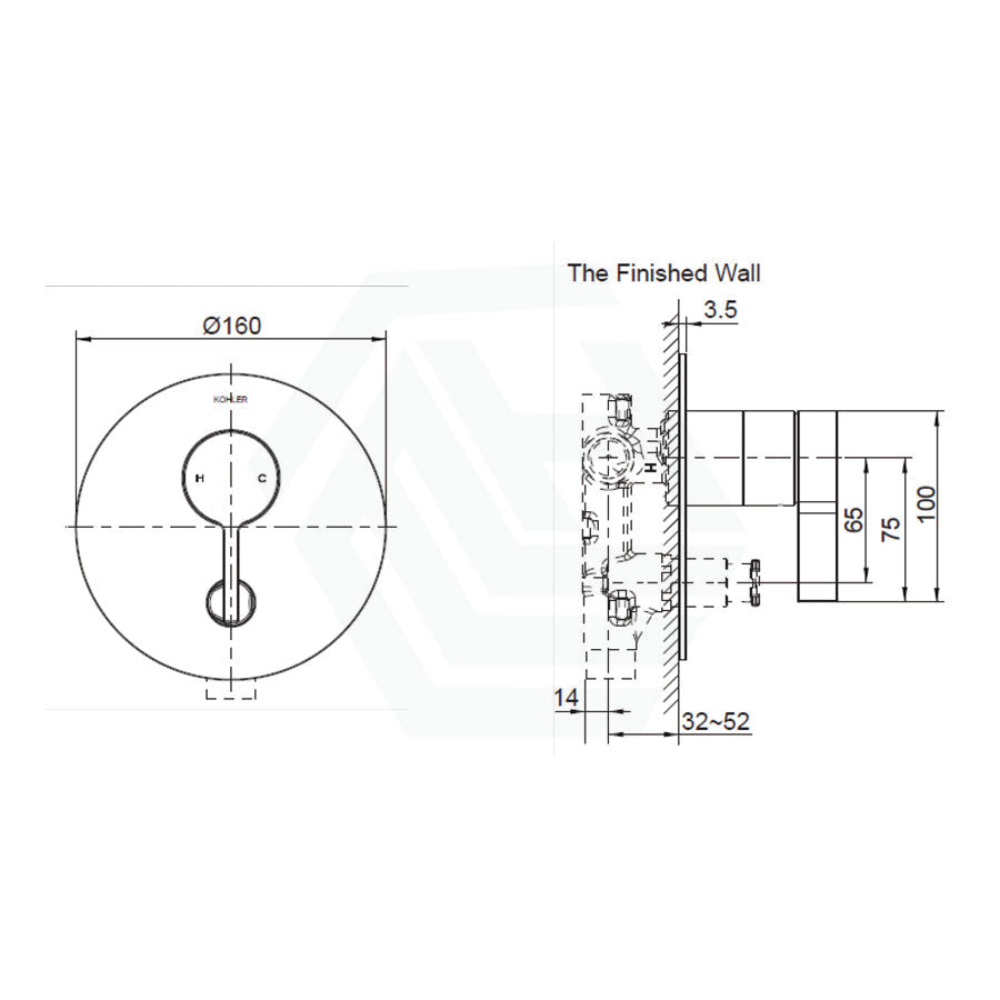 Kohler Components Polished Chrome Round Plate Shower/Bath Mixer with Diverter Thin Trim Kit Only - Lever Handle