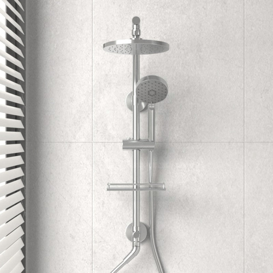 - Diverter at the base of the column makes for easy toggling between handshower and rainhead
