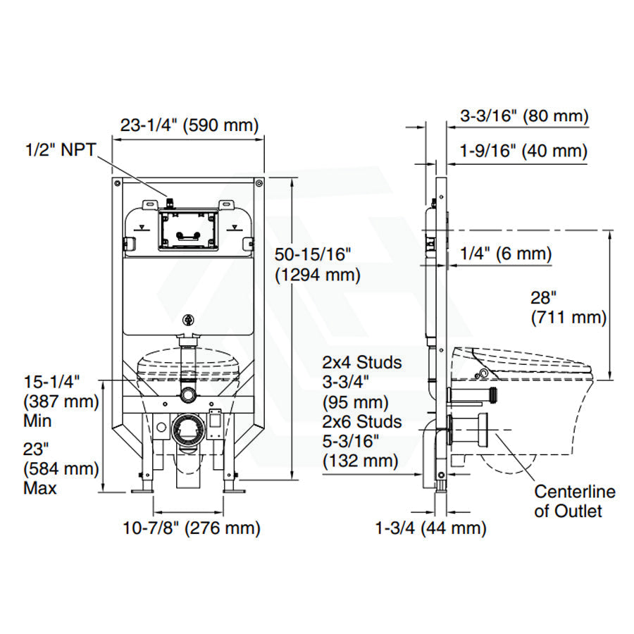 - Durable steel frame carrier is installed on either 2"x4" or 2"x6" studs behind the wall. See installation guide for more detailed information.