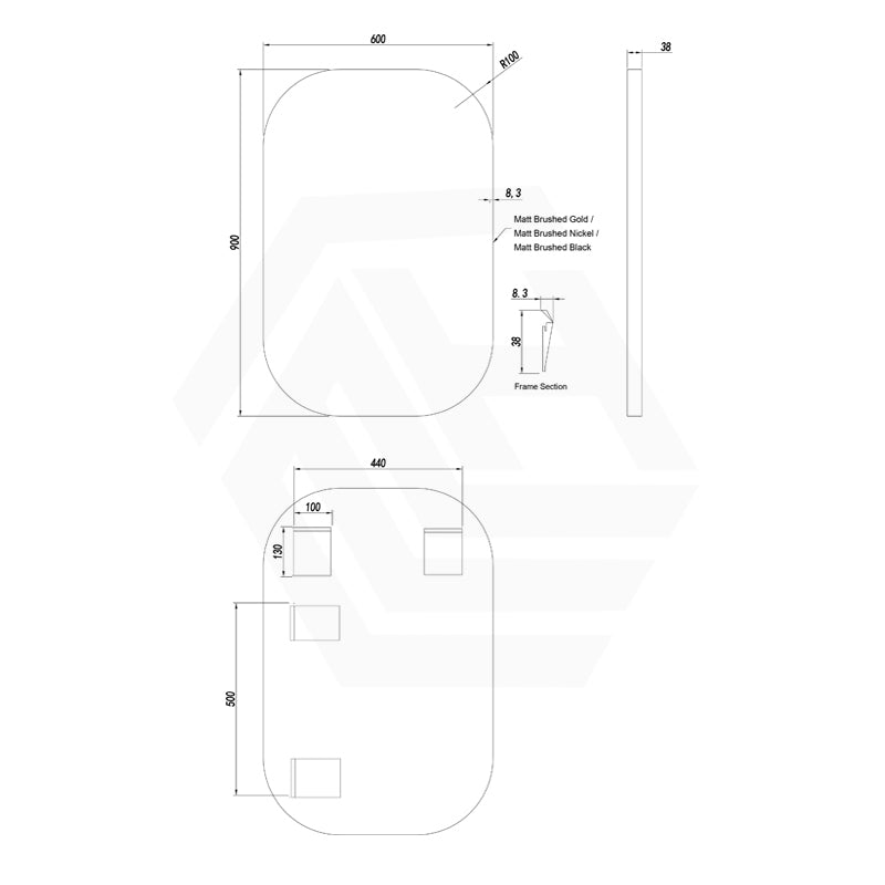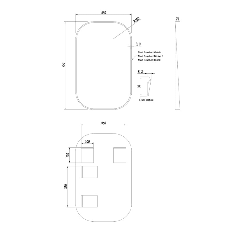 Style | Brushed Nickel / Matt Black / Brushed Gold Aluminum Frame, No Discoloration; High Definition |