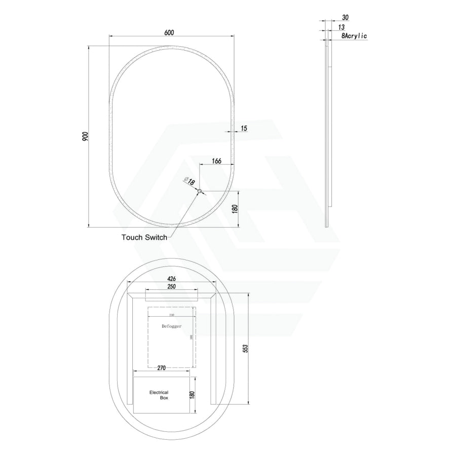 600x900mm Led Mirror Oval Acrylic Touch Sensor