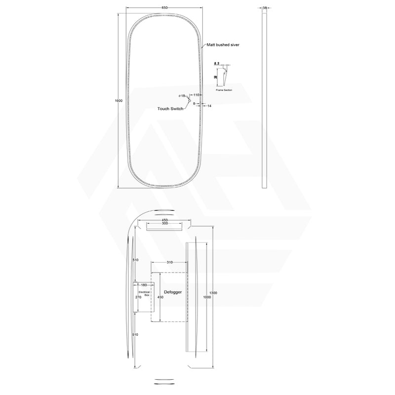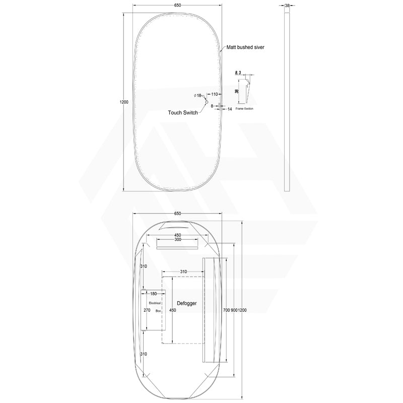 650/1200/1600mm Lamex Oval Silver Framed LED Frontlit Mirror