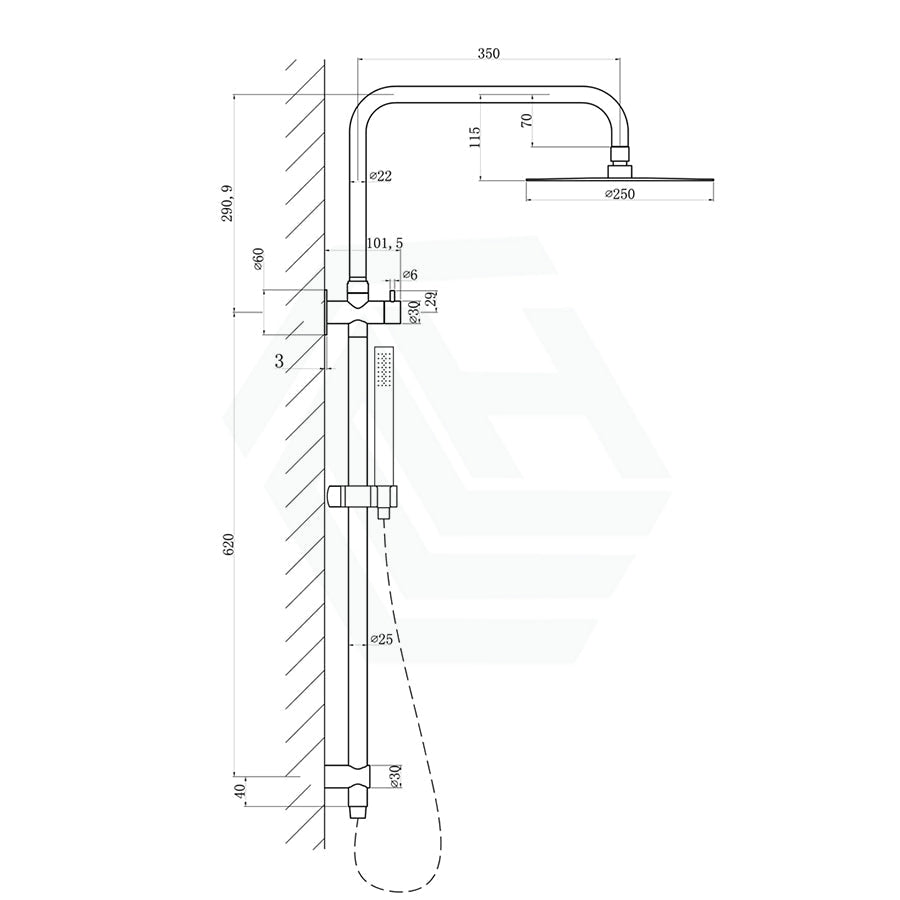 - 250mm diameter Shower Head