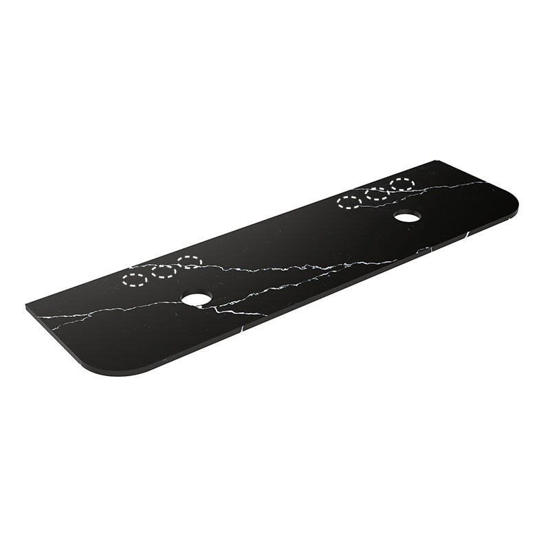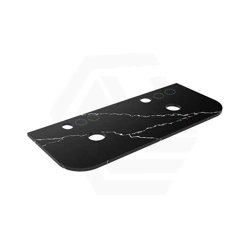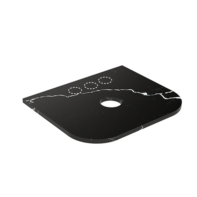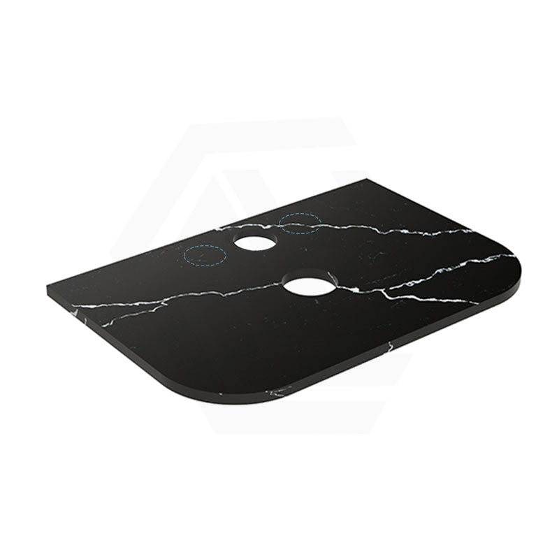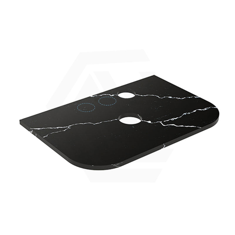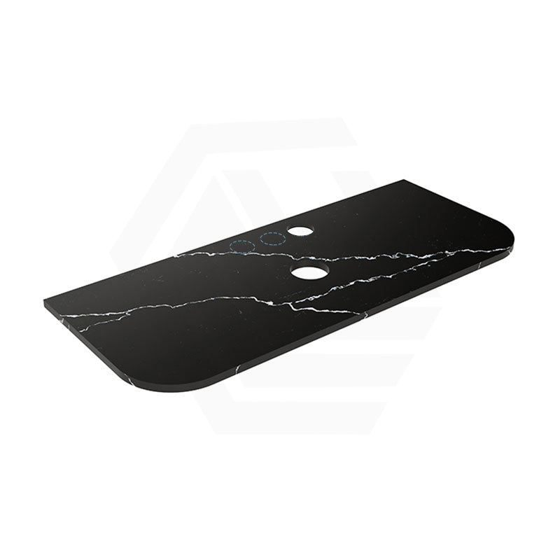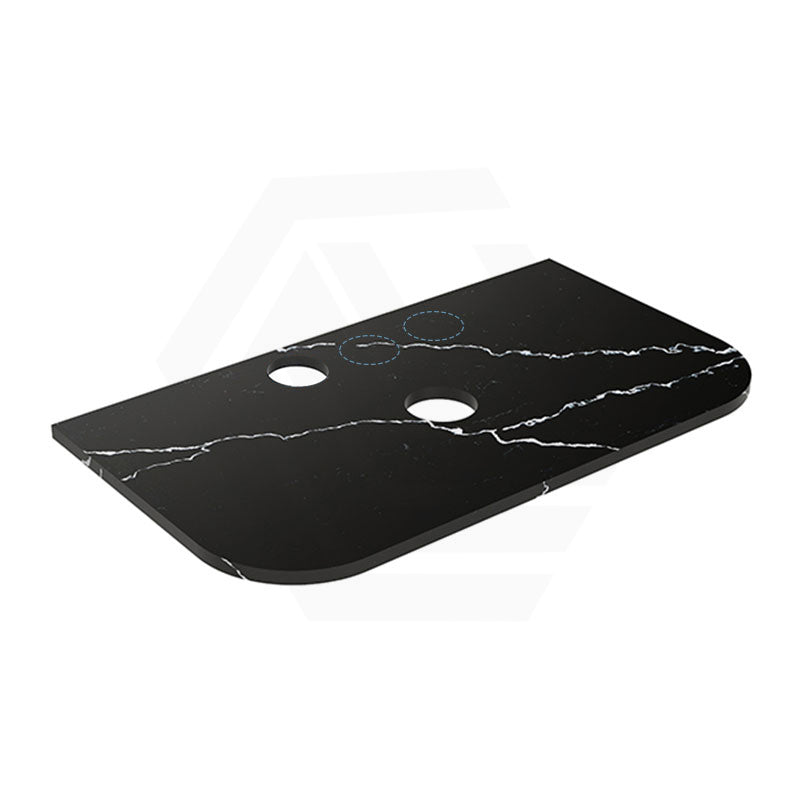 Lukka 20mm Thick Calacatta Night Curved Edge Zero Silica Engineer Stone Top with Center Waste Hole, 12 /10/2 O'clock Semi Drilled Tap Hole Available 605-1805mm