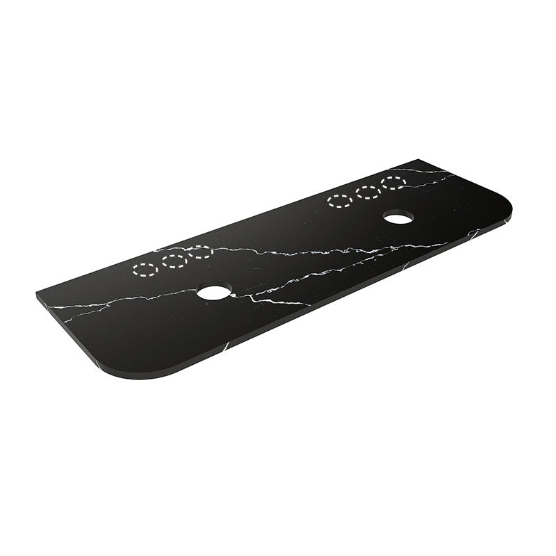 Expertly crafted with a 20mm thick Calacatta Night curved edge, this Lukka engineered stone top boasts zero silica content for maximum durability. Featuring a centrally located waste hole and the option for a semi-drilled tap hole at either 12, 10, or 2 o'clock, this top offers both form and function.