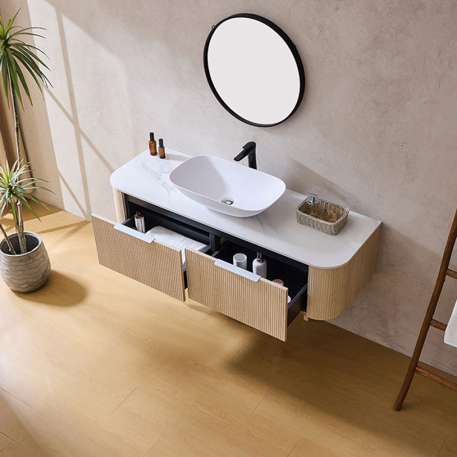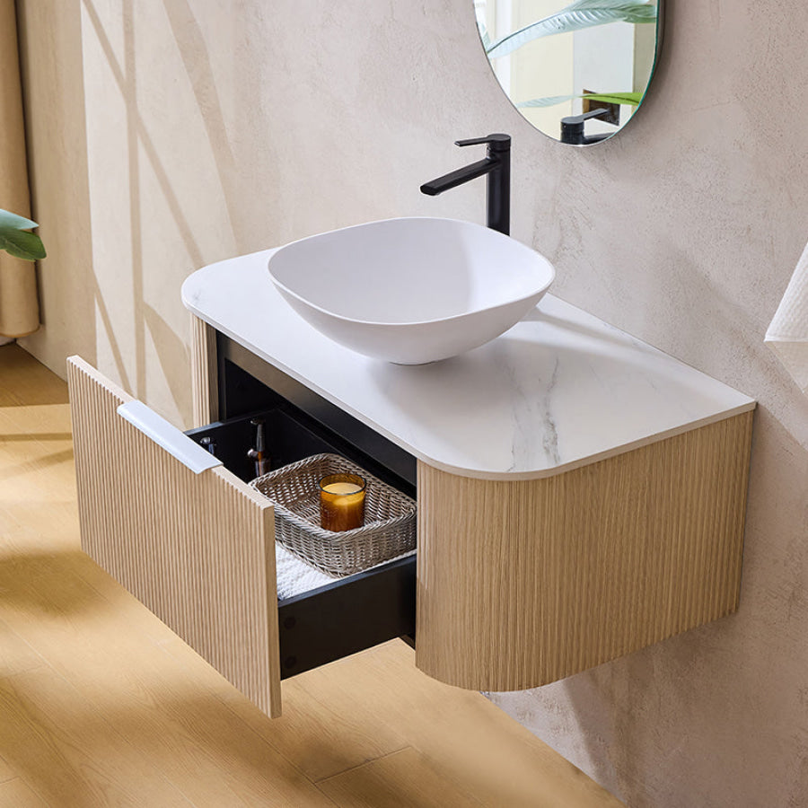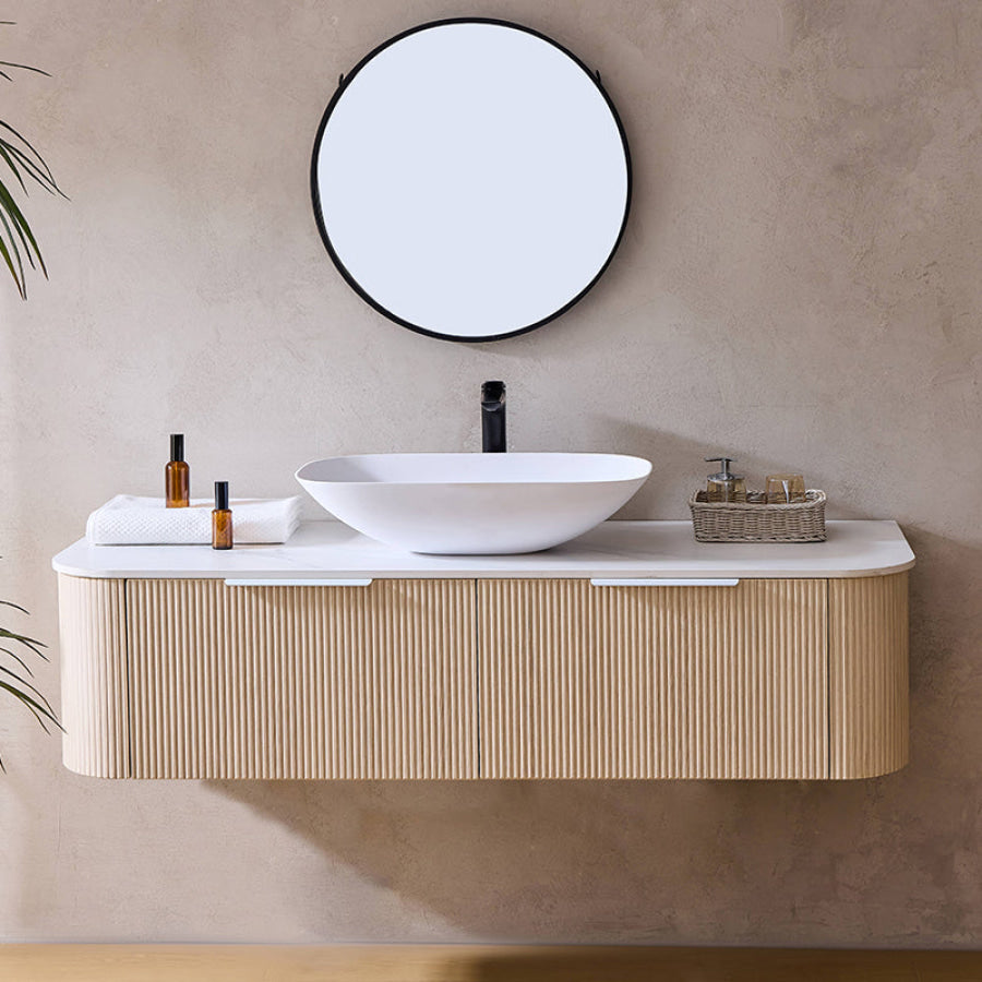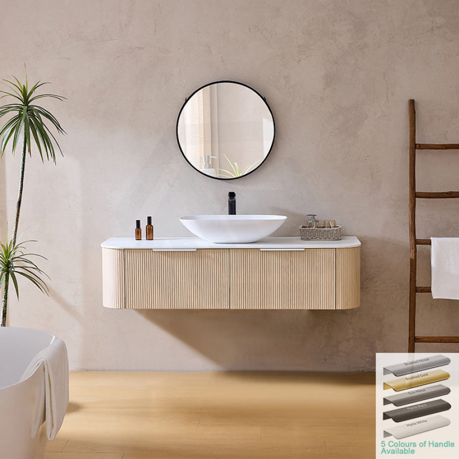 Lukka Agena 600-1800mm Costal Oak Fluted Wood Grain Wall Hung Vanity with Soft Closing Drawers