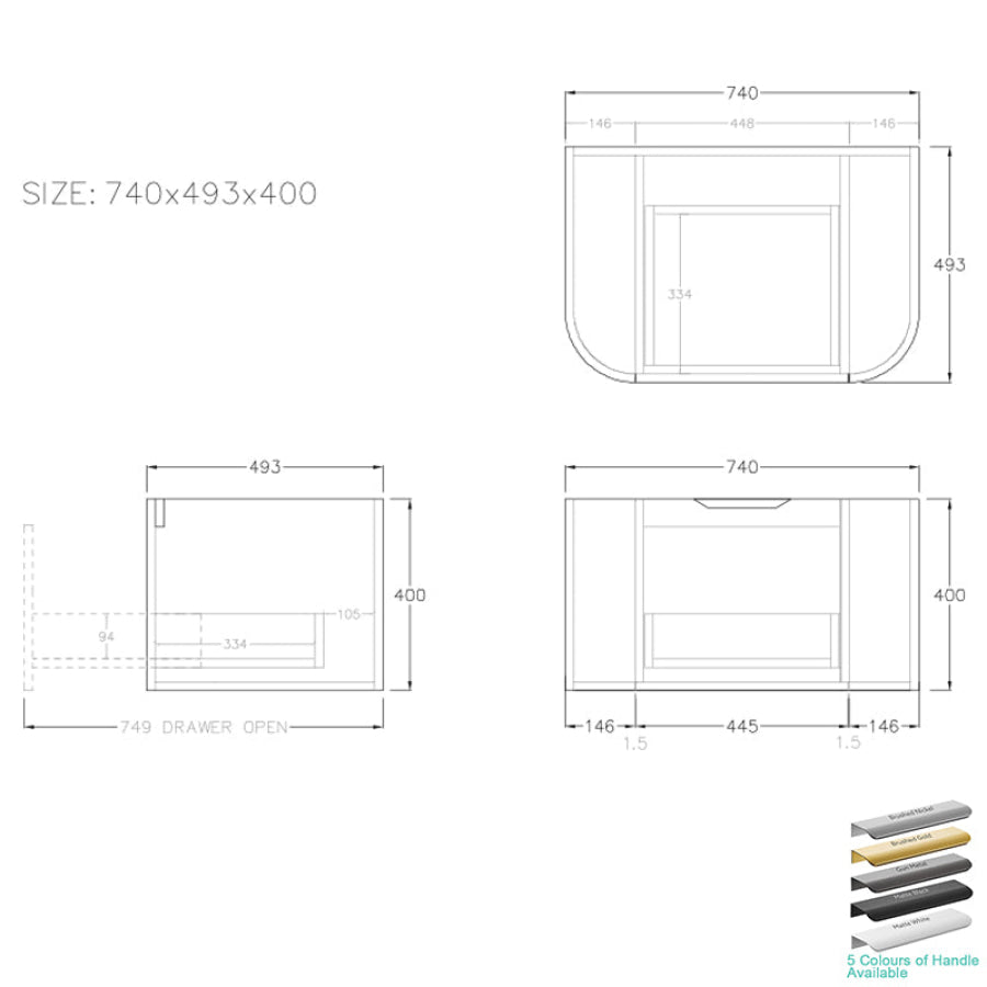 Brushed Gold/Brushed Nickel/Gum Metal/Matt Black/Matt White Handle