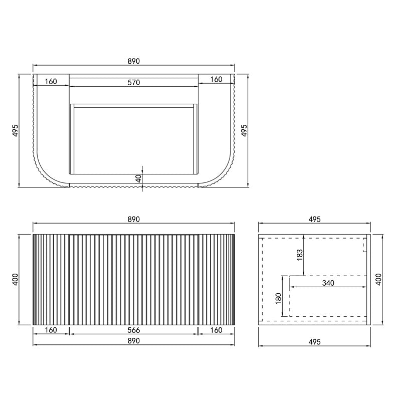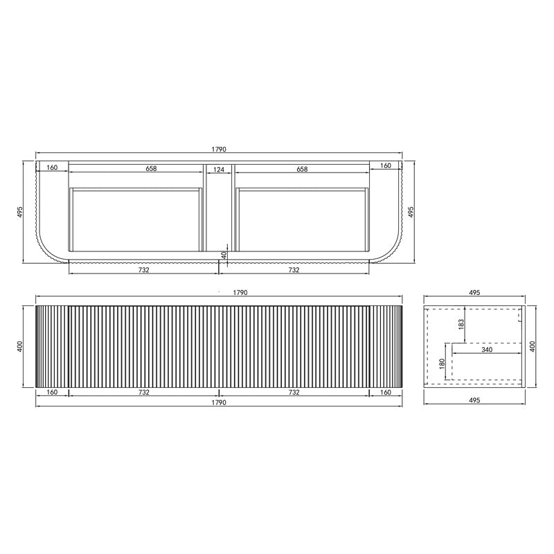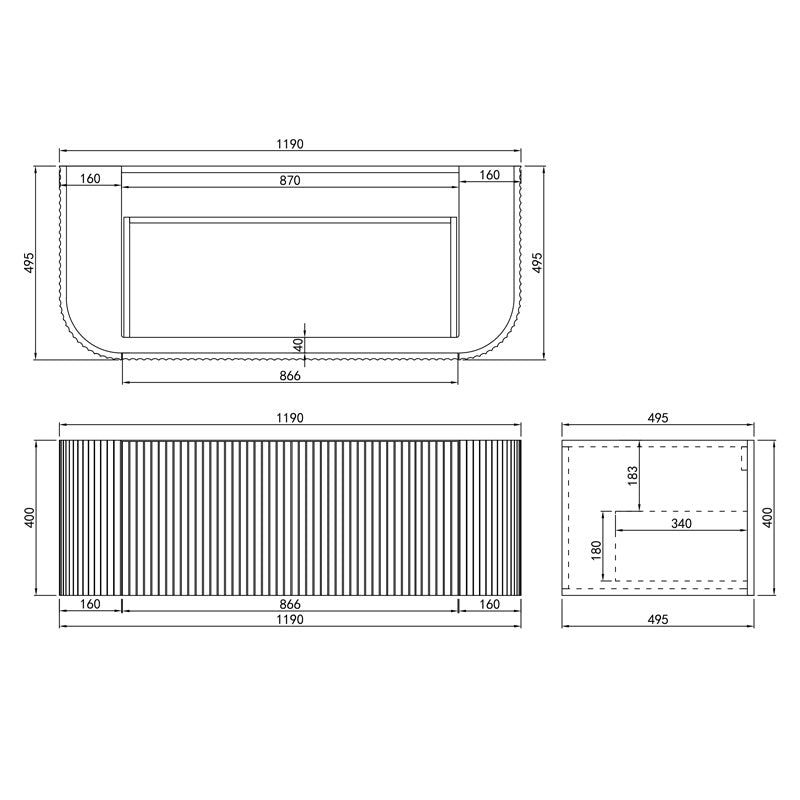 600-1800mm Lukka Agena Matt White/Black Wall Hung Bathroom Fluted PVC Vanity with Soft Closing Drawers Curve Edge