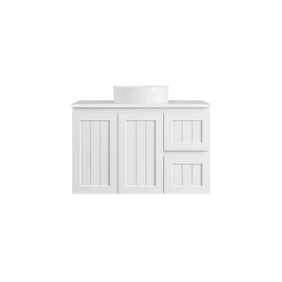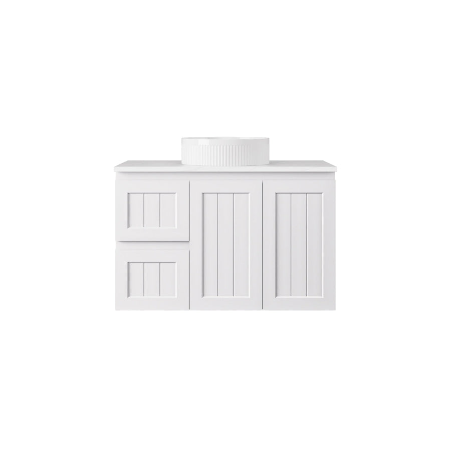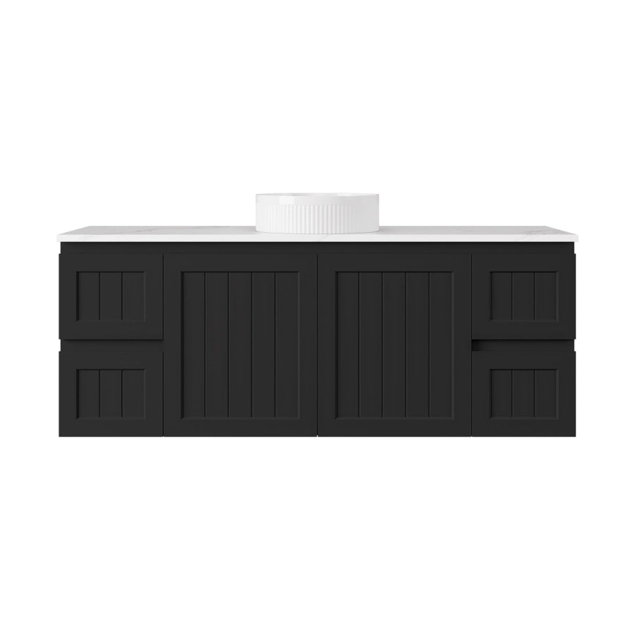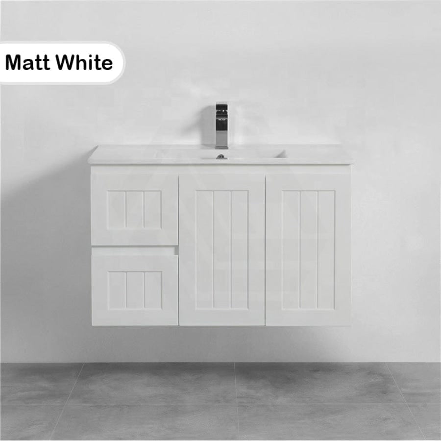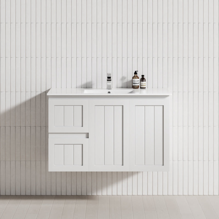600-1500mm Lukka Archill Federation Wall Hung Vanity PVC Board Matt White/Black Linear Surface