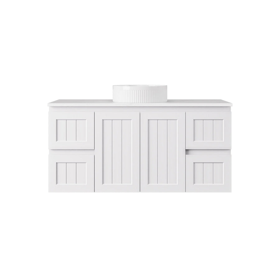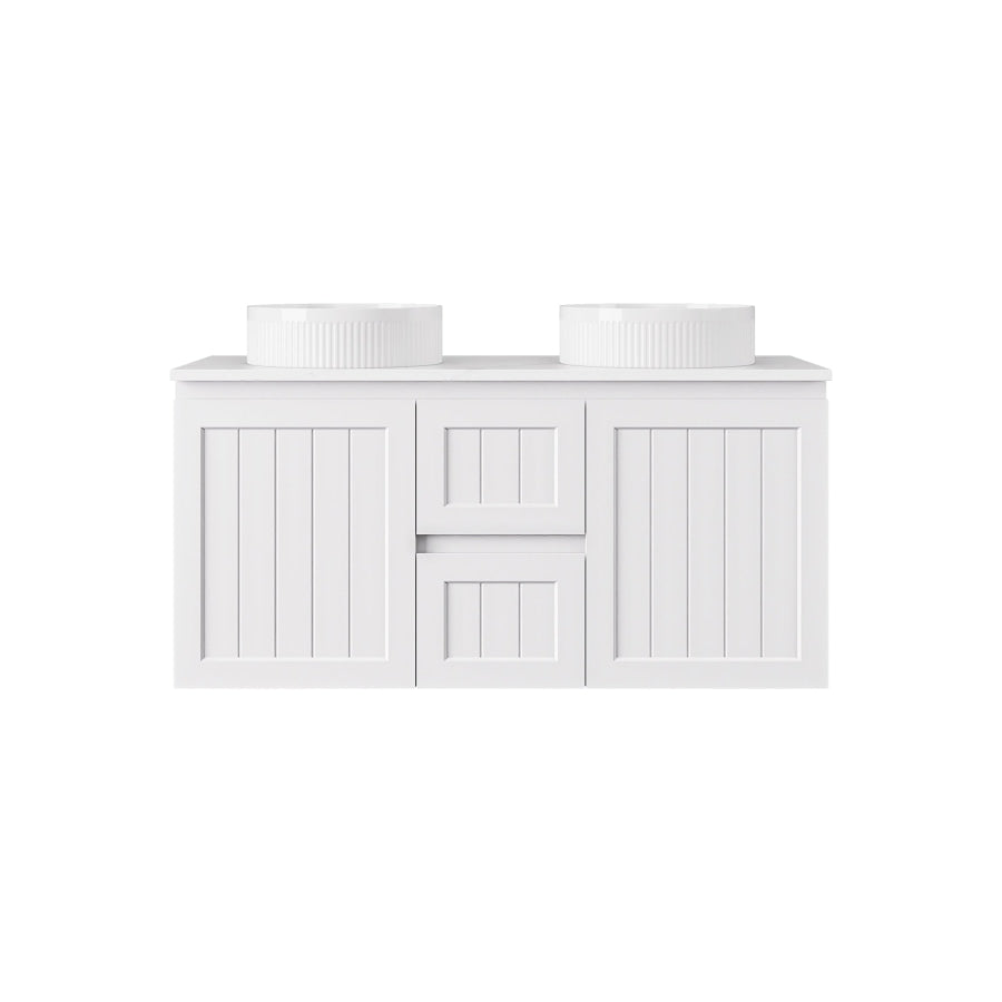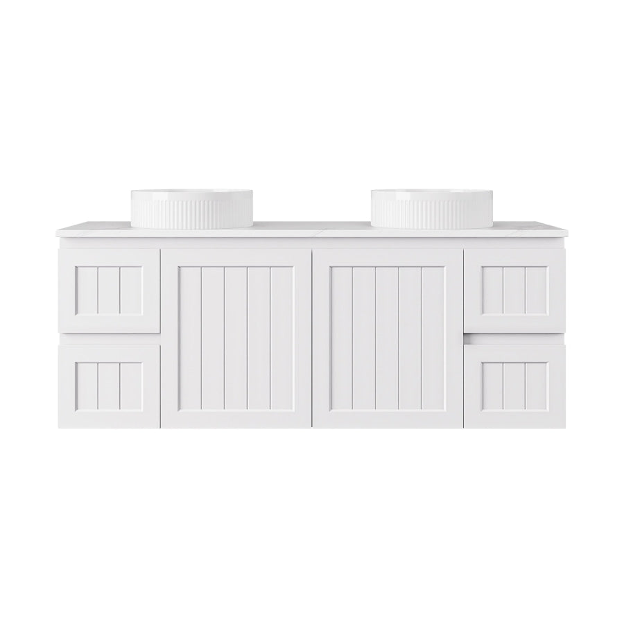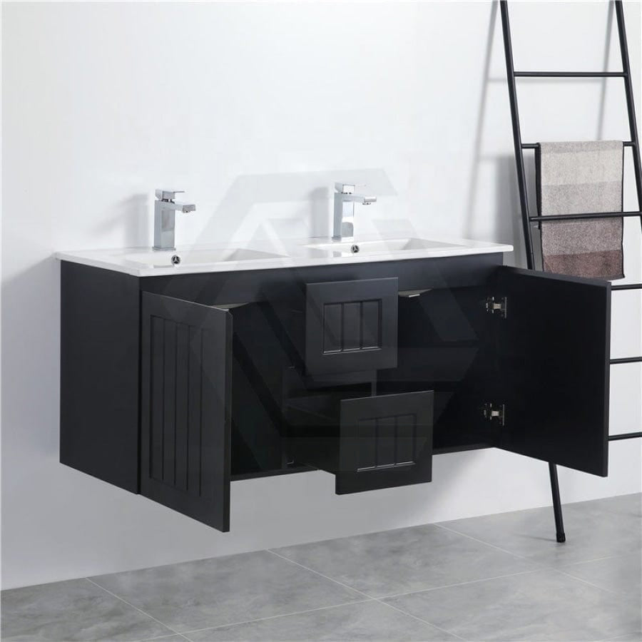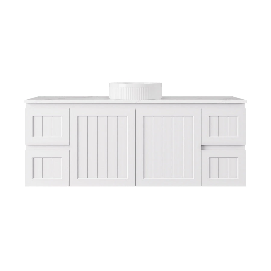 600-1500mm Lukka Archill Federation Wall Hung Vanity PVC Board Matt White/Black Linear Surface