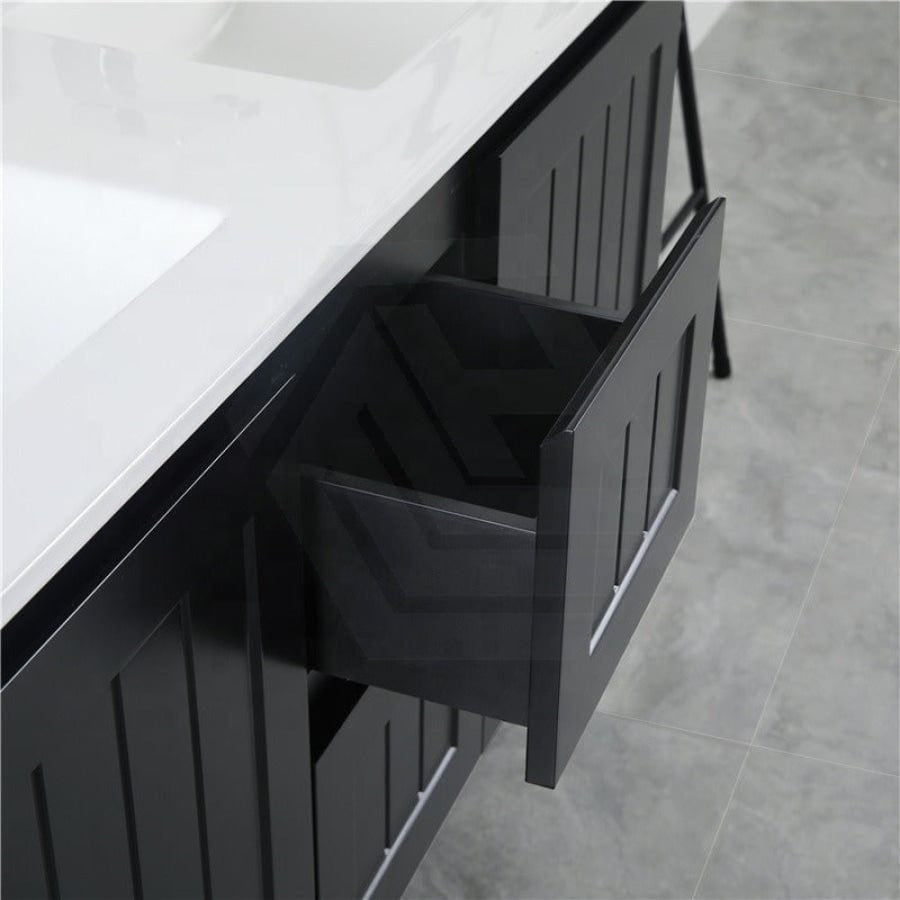 The 600-1500mm Lukka Archill Federation Wall Hung Vanity PVC Board Matt White/Black Linear Surface brings comfort and function together in the bathroom, equipped with a soft closing design.