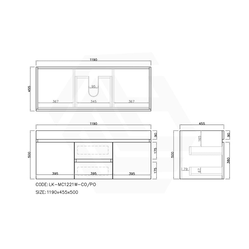 Lukka Camden Modern 1200mm Wall Hung Vanity E0 MDF Wood Grain PVC Film Cabinet with Middle Drawers In Various Colours