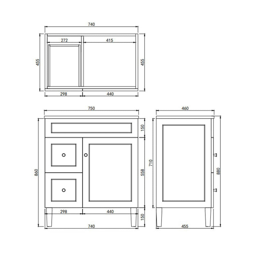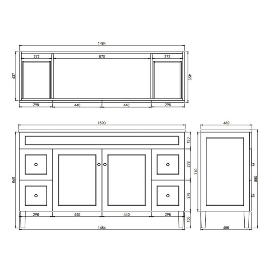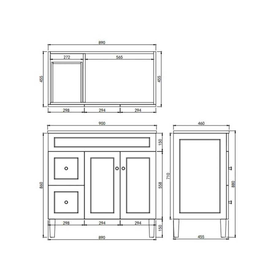 Dimensions 590mm/740mm/890mm/1190mm/1490mm (L) x 455mm (W) x 860mm (H) ( Please allow exist 3-5cm deviation due to the manual measurement )