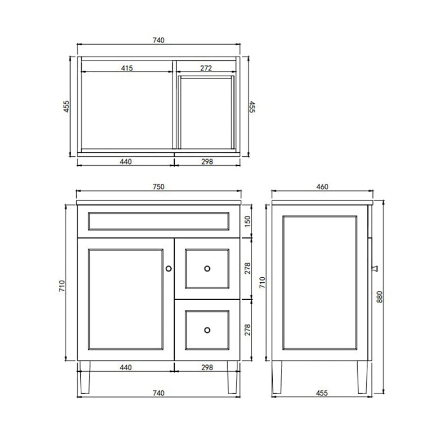 Lukka Harold Federation 600-1500mm Matt Black/White PVC Freestanding Vanity with Legs