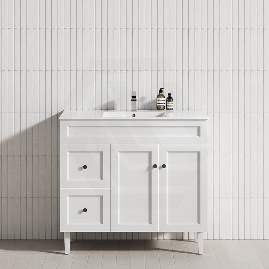 Introducing the Lukka Harold Federation Vanity, a sleek and modern addition to any bathroom. Constructed with durable PVC and featuring stylish legs, this freestanding vanity offers versatile sizing options from 600-1500mm. Upgrade your space with this expertly designed and functional piece.