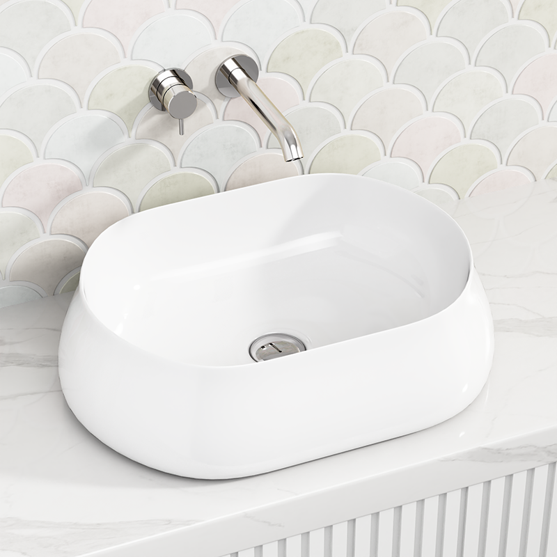 This 570x420x160mm oval ceramic above counter basin offers a modern and sophisticated look with its glossy white finish. Durable and easy to maintain, it will make a functional addition to any bathroom.