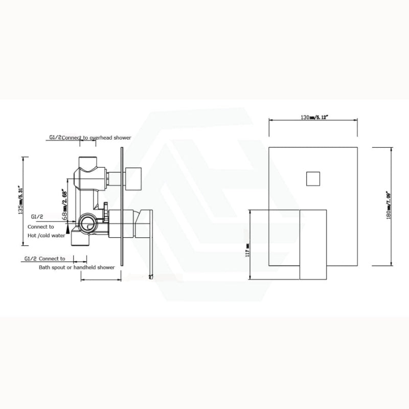 Wall Mounted Square Shower Diverter
