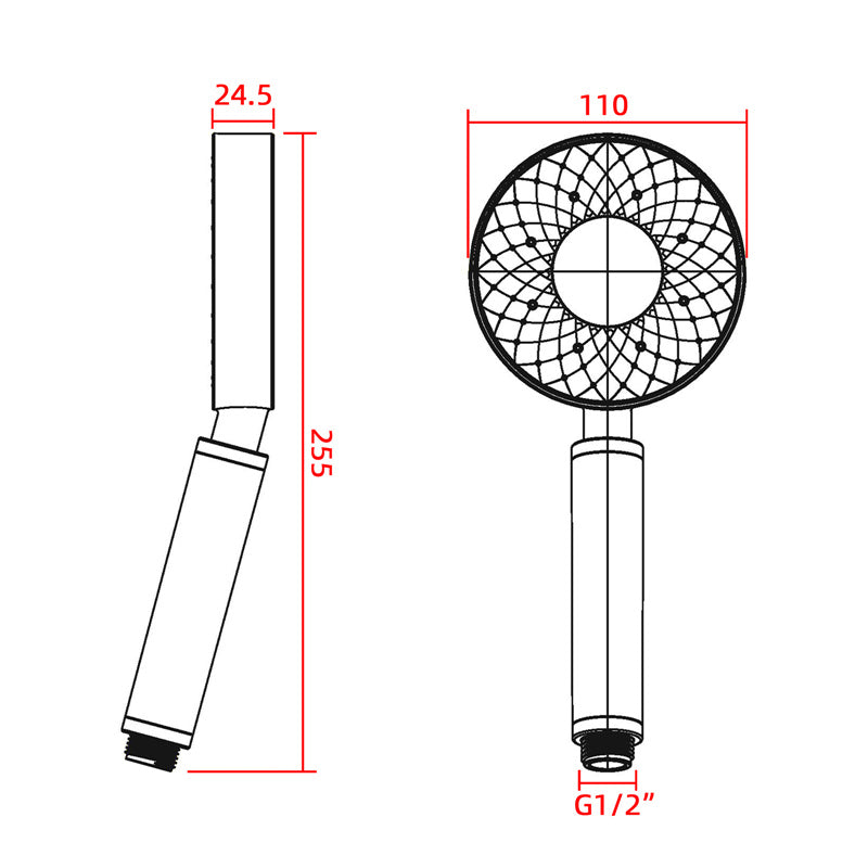 Macho Round ABS 3 Functions Handheld Shower Head Only Hollow Design White & Chrome/Chrome & Black