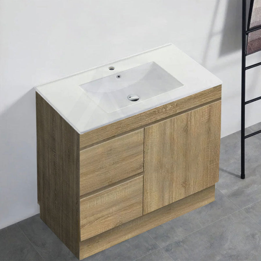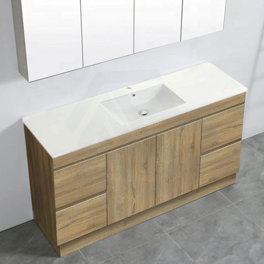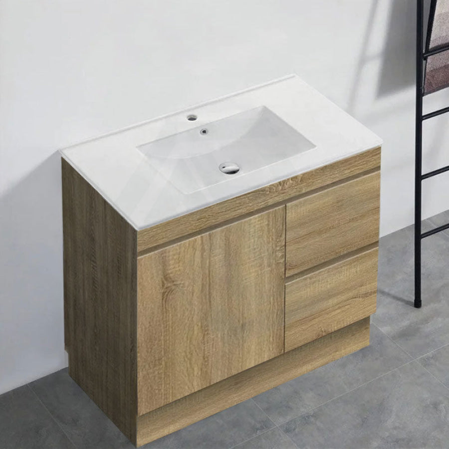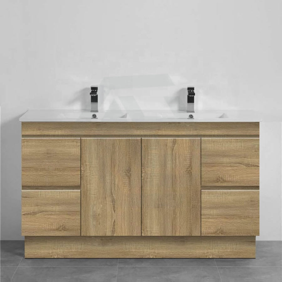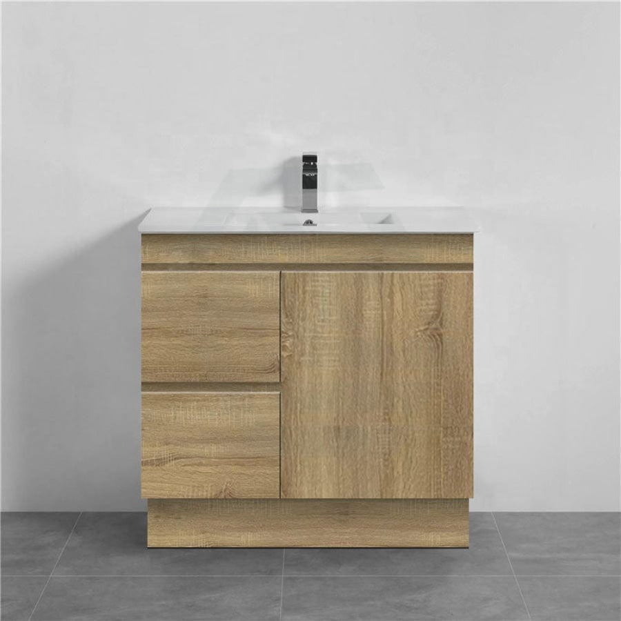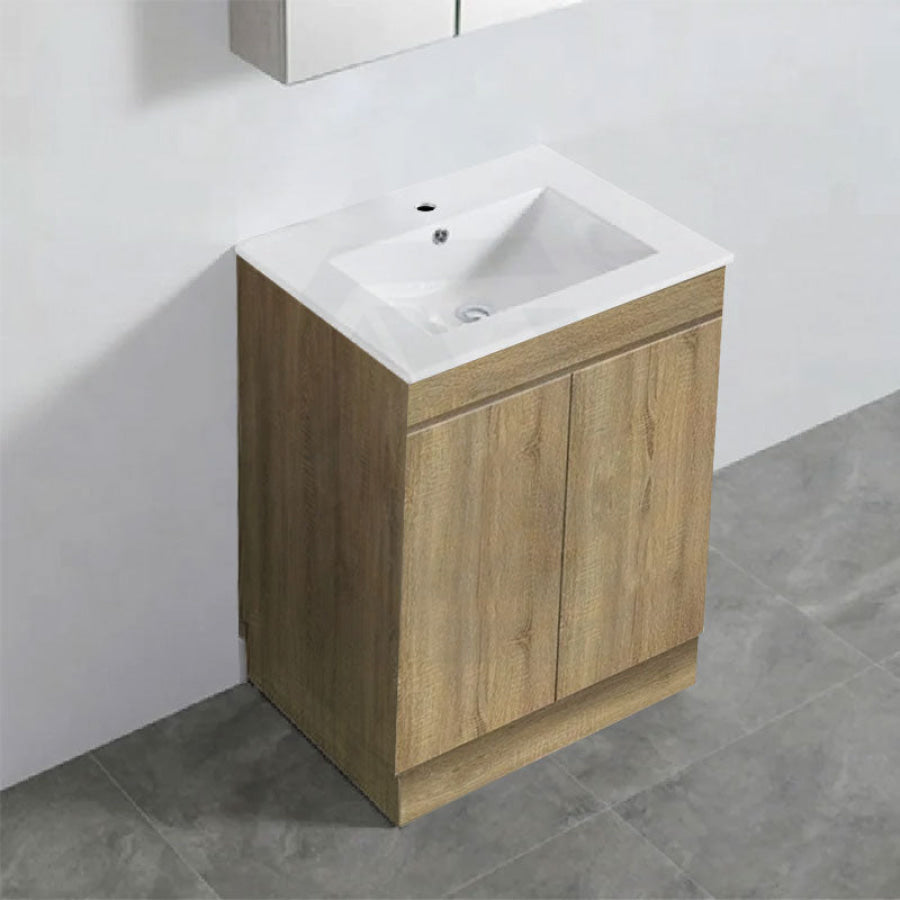 600-1500mm Freestanding Kickboard Bathroom Vanity Light Oak Wood Grain Cabinet Only & Ceramic/Poly Top Available
