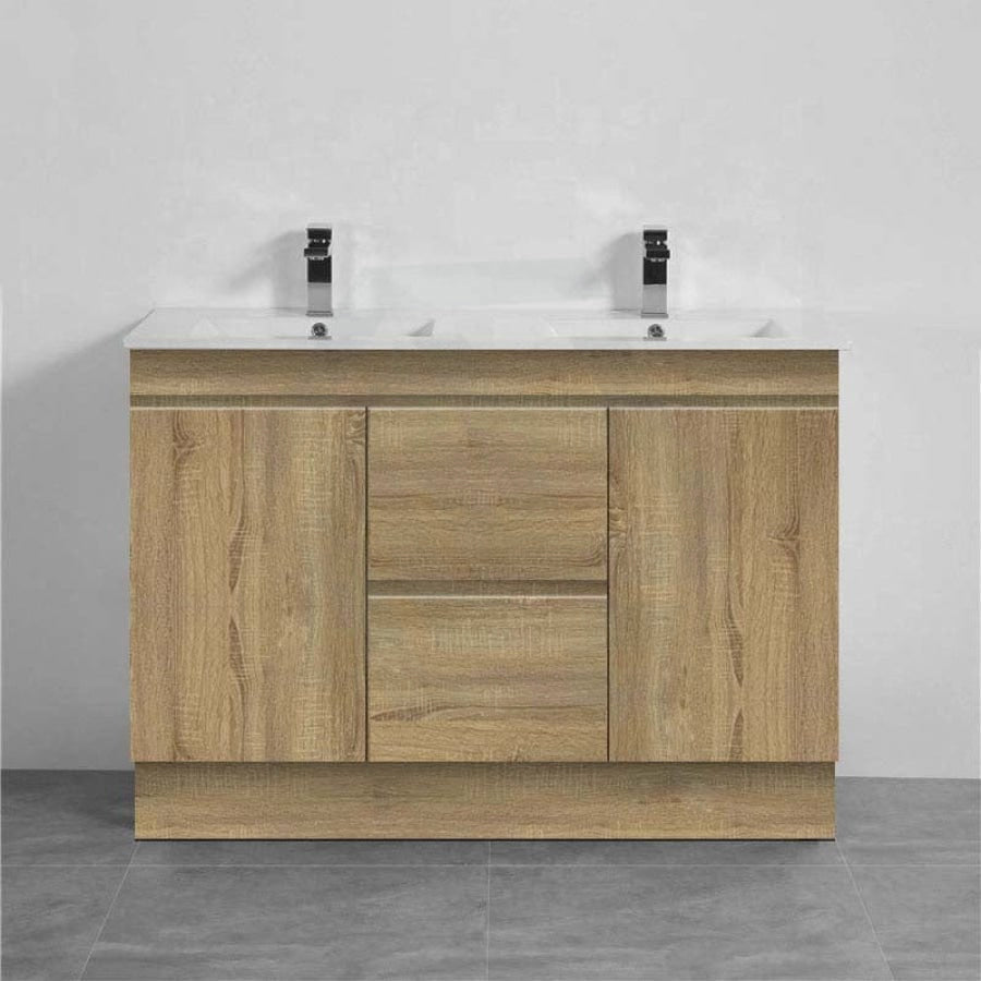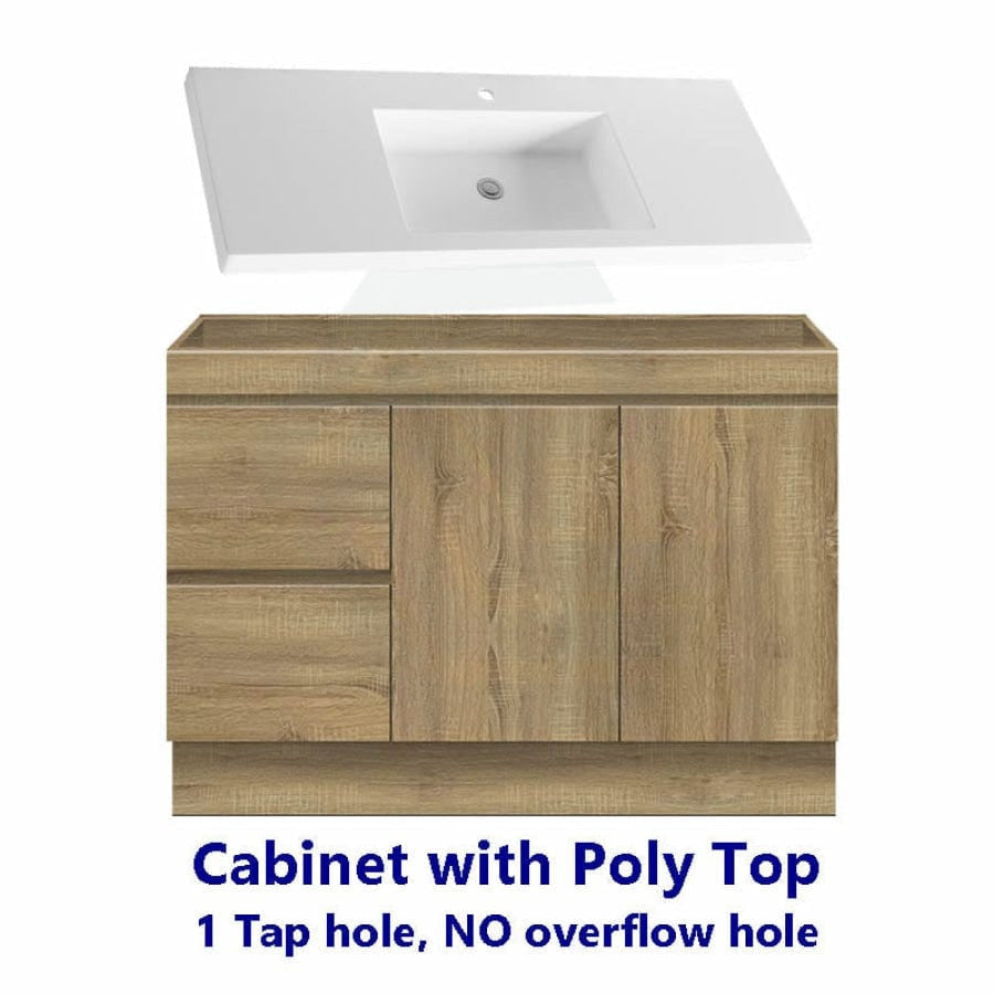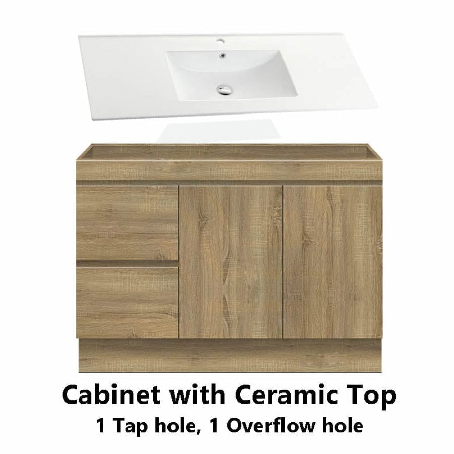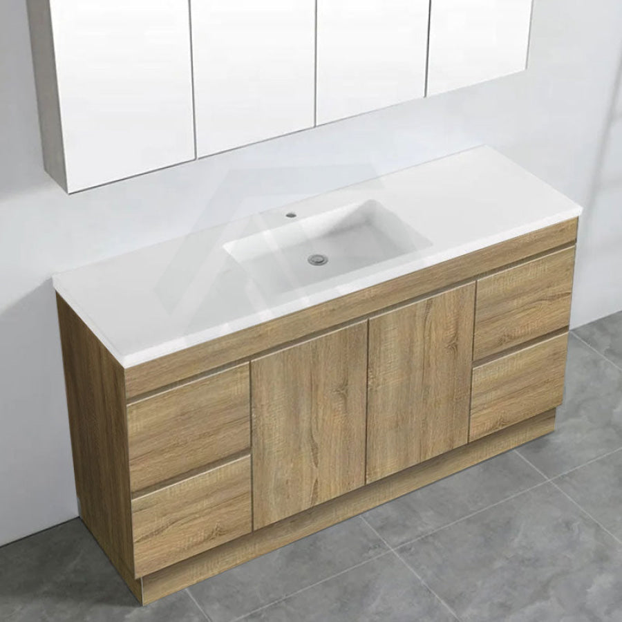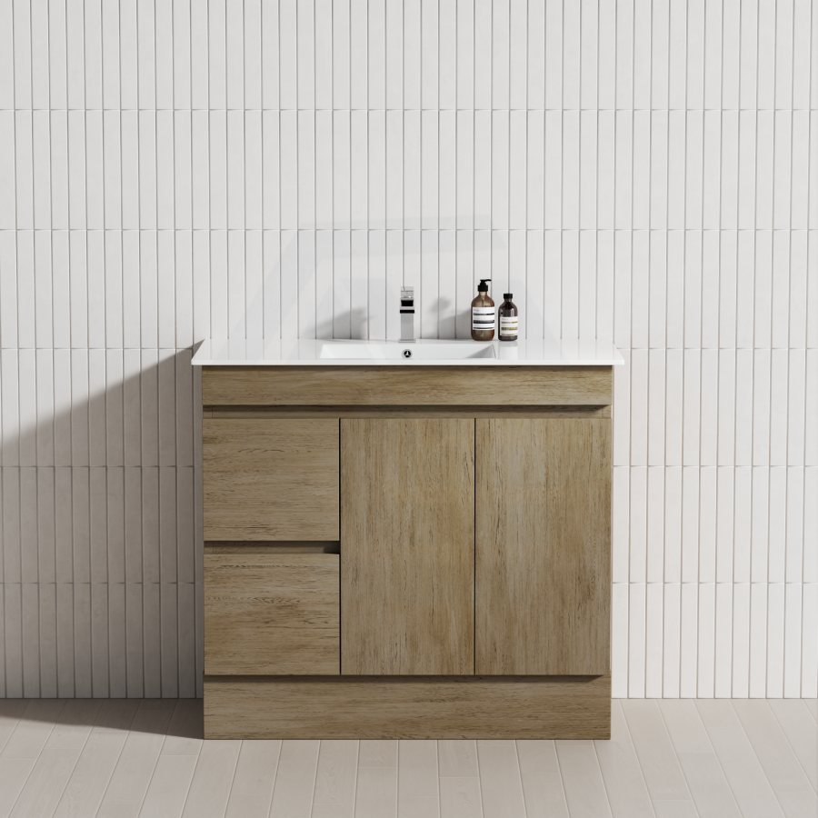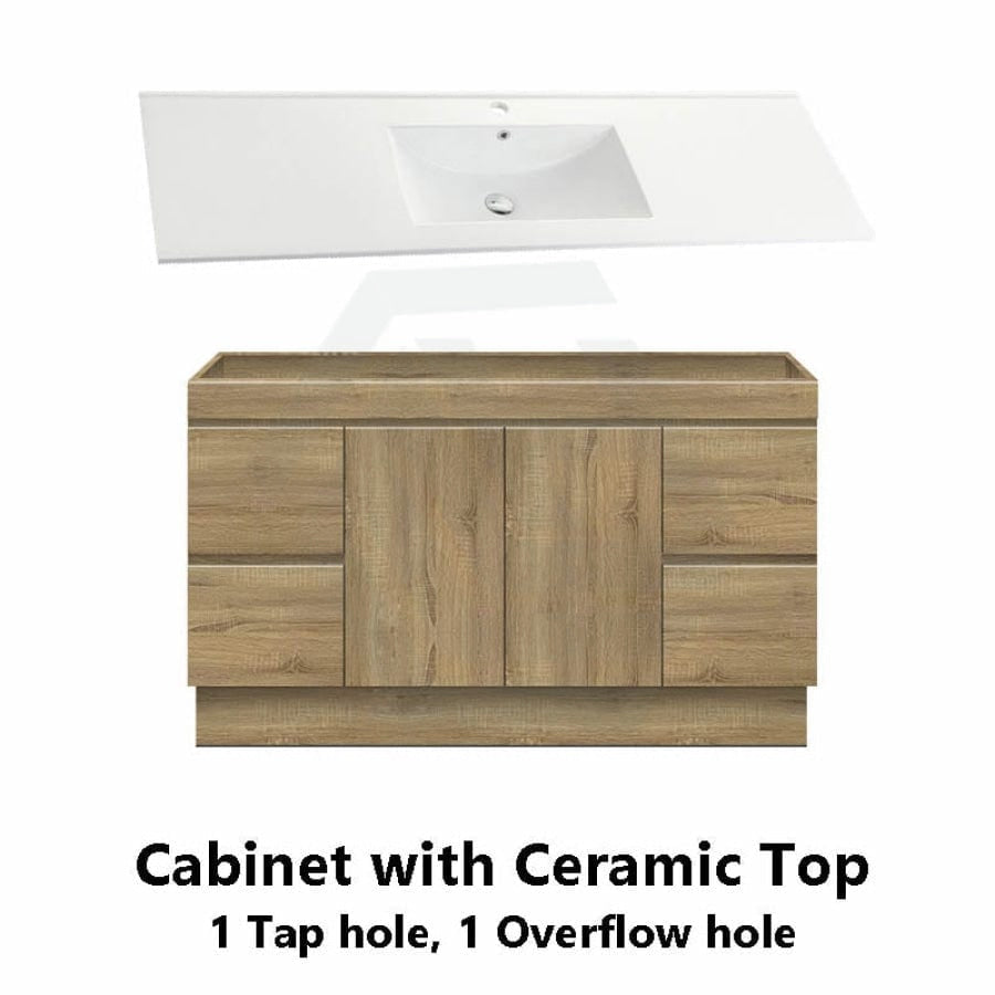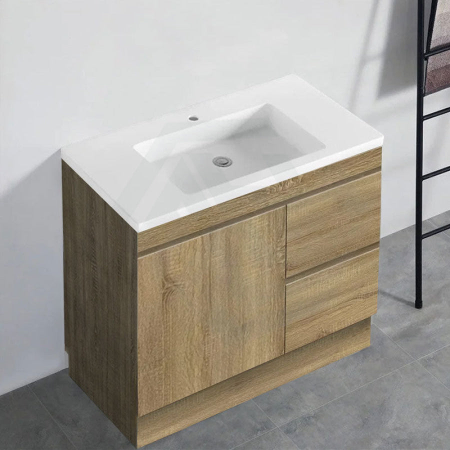 600-1500mm Freestanding Kickboard Bathroom Vanity Light Oak Wood Grain Cabinet Only & Ceramic/Poly Top Available